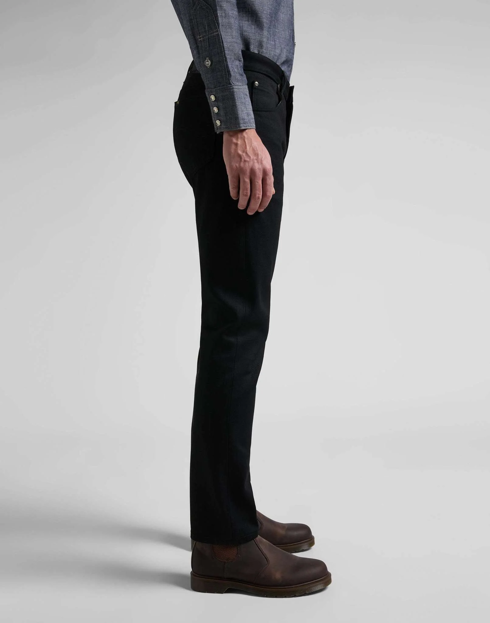 ● Coupe slim ● Taille moyenne ● Droite sur le bas de la jambe ● Zip fly