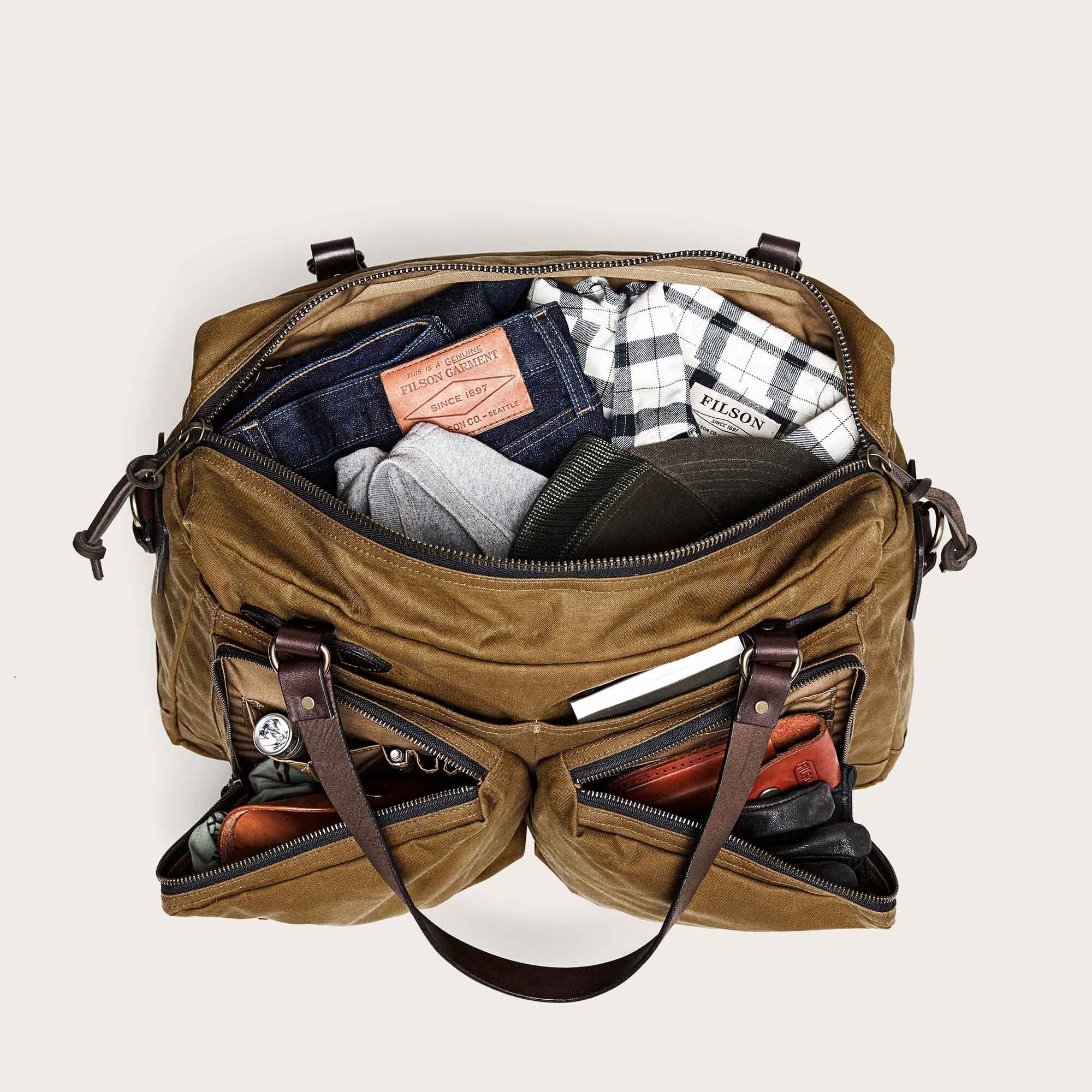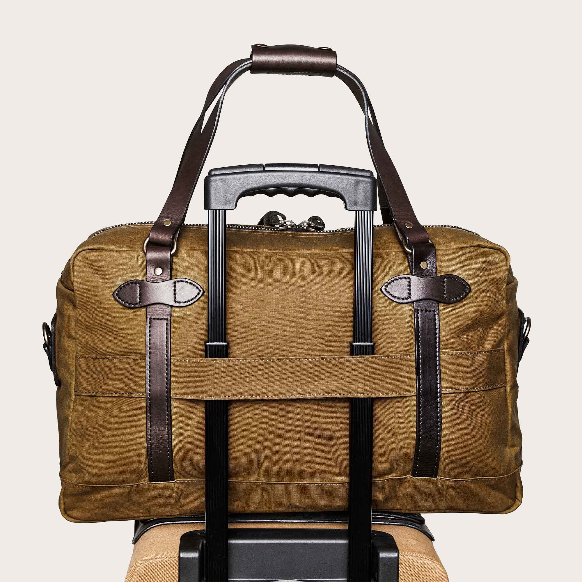 Notre sac de sport 48 Hour en tissu Tin Cloth est idéal pour les voyages d’une nuit ou d’un week-end. Le tissu Tin Cloth huilé protège de la pluie et de la neige pour garder votre équipement au sec. Une bandoulière réglable et amovible permet un port à l’épaule ou en bandoulière. Équipé de sangles en cuir Bridle pour le transport à la main, et d’une sangle de bagage à utiliser avec les valises à roulettes destinées à voyager en soute. Qu’il soit utilisé sur le chantier, sur le terrain ou comme bagage à main, ce sac de voyage polyvalent est à la hauteur de la tâche.