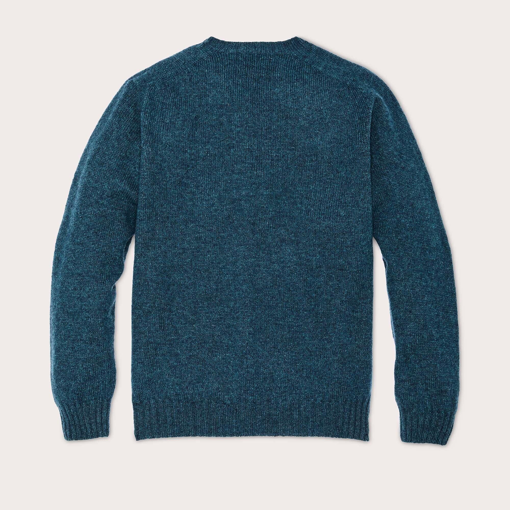 Ce pull ras du cou traditionnel 4GG est fabriqué en Écosse avec des fils de calibre 4. Il est réalisé en laine d’agneau provenant de la première tonte d’un mouton, ce qui lui confère un toucher ultra-doux. La laine naturelle est isolante, qu’elle soit sèche ou mouillée, ce qui en fait un matériau idéal à porter par mauvais temps.