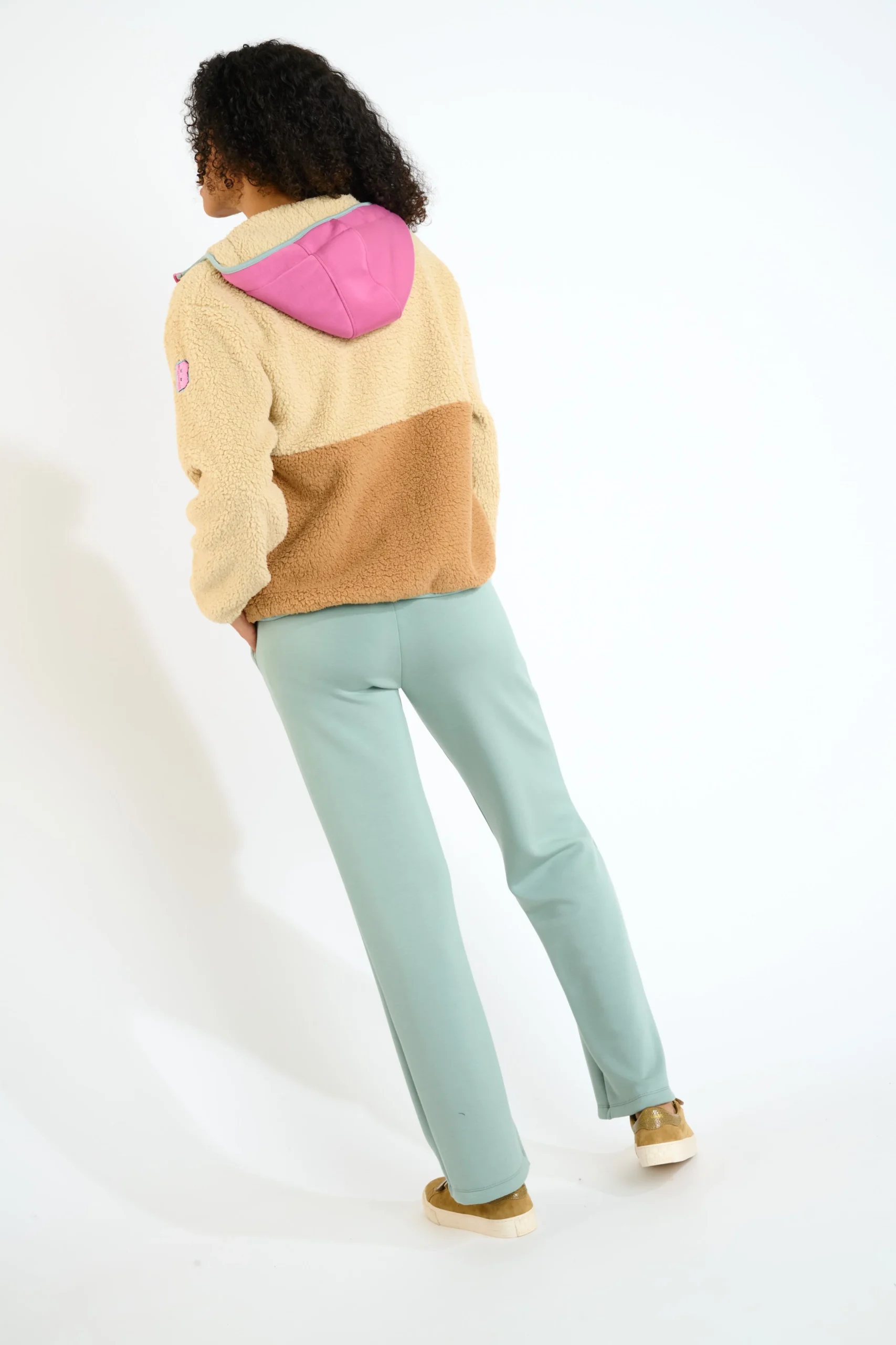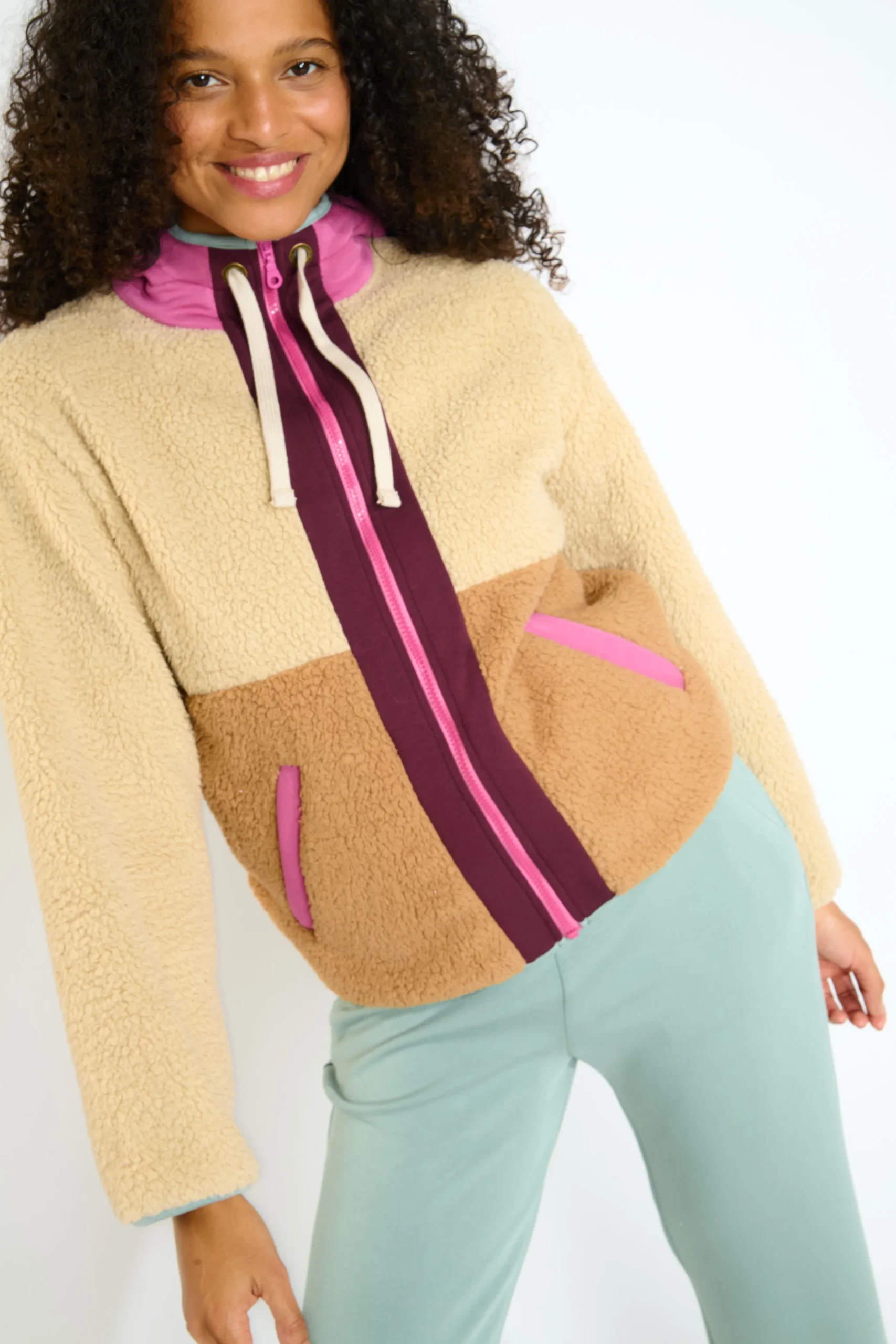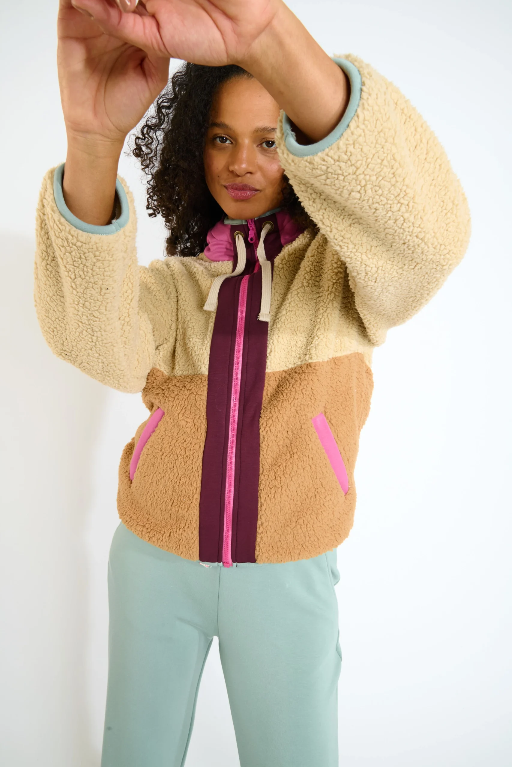 Avec sa capuche et son cordon de serrage, sa fermeture éclair intégrale et son molleton doux bicolore en camel avec des accents roses et bordeaux, il attire tous les regards. La coupe Regular Fit assure une tenue confortable en toute occasion.