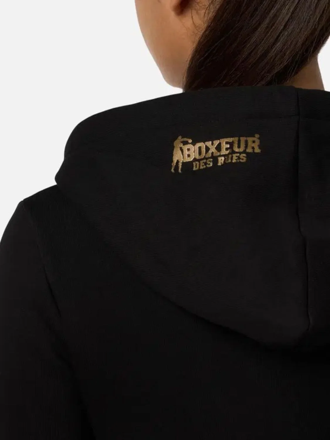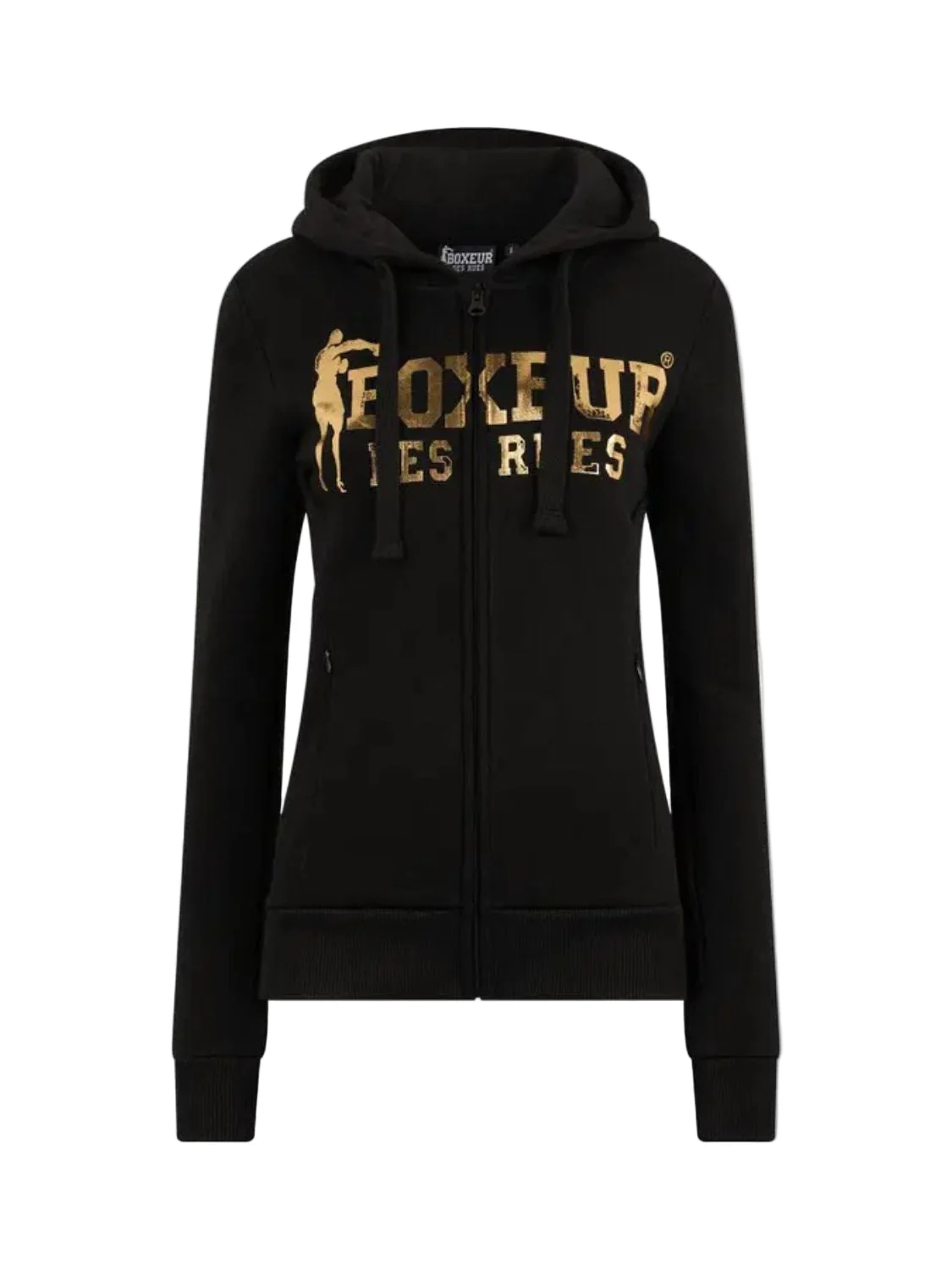 Le sweat-shirt Basic Logo Full Zip en noir et or assure une coupe près du corps grâce à sa coupe slim.