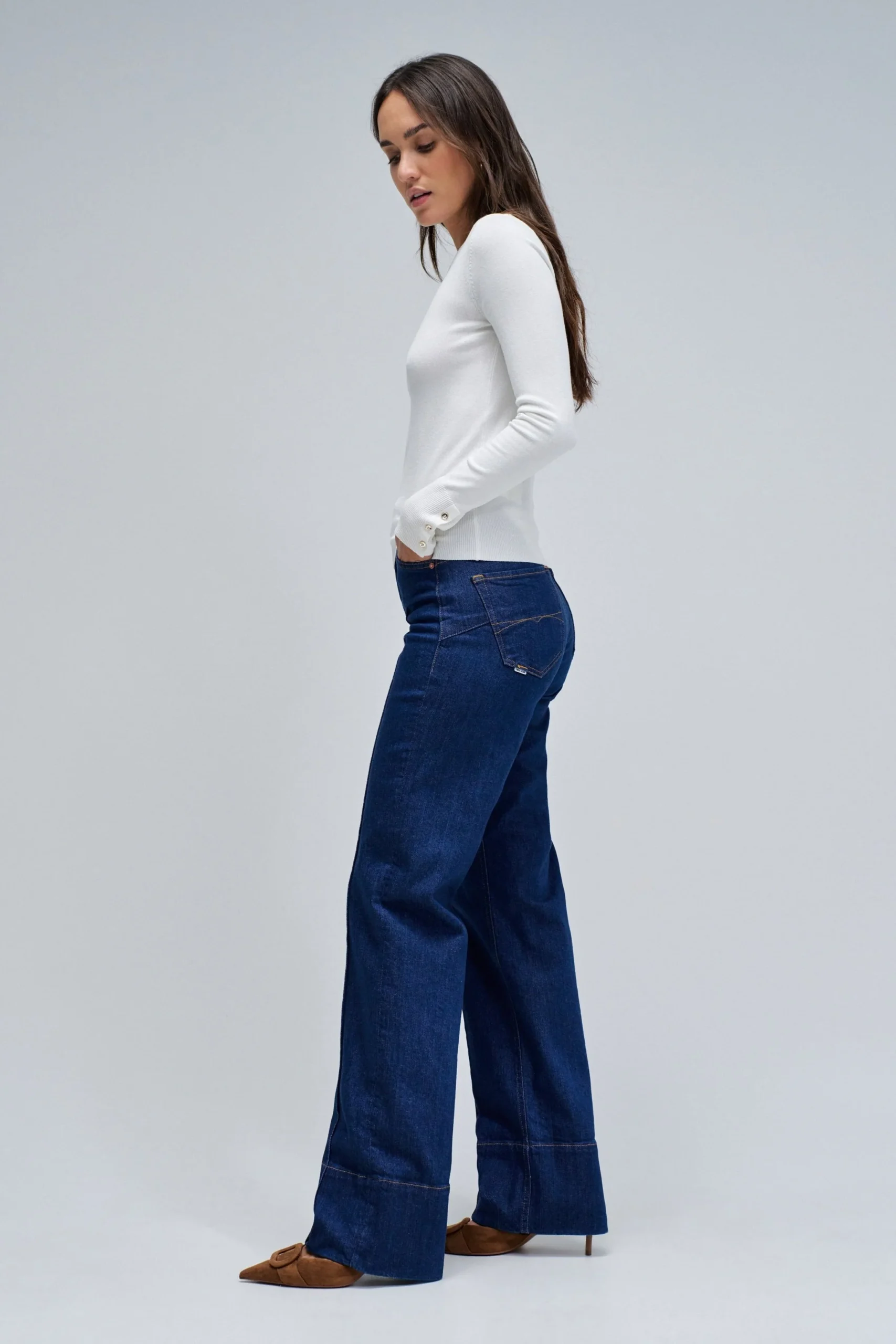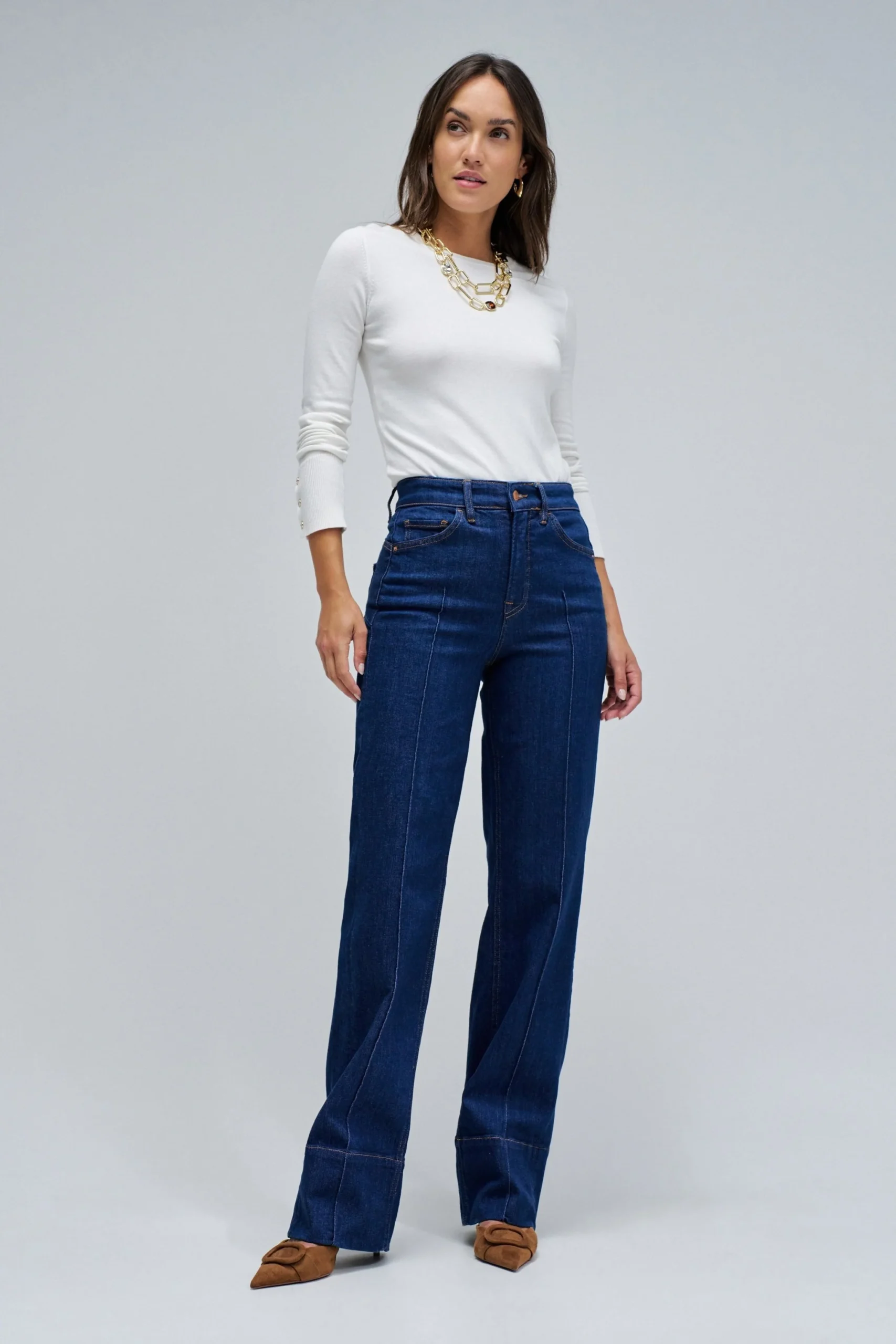 Le Basic Long Sleeve en Light Pearl est un pull élégant en maille fine avec une silhouette qui souligne la silhouette.