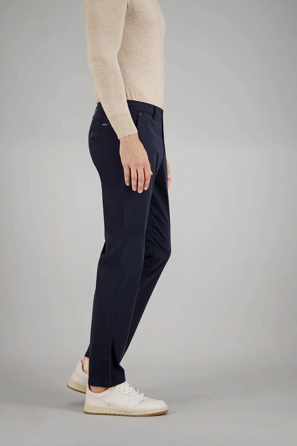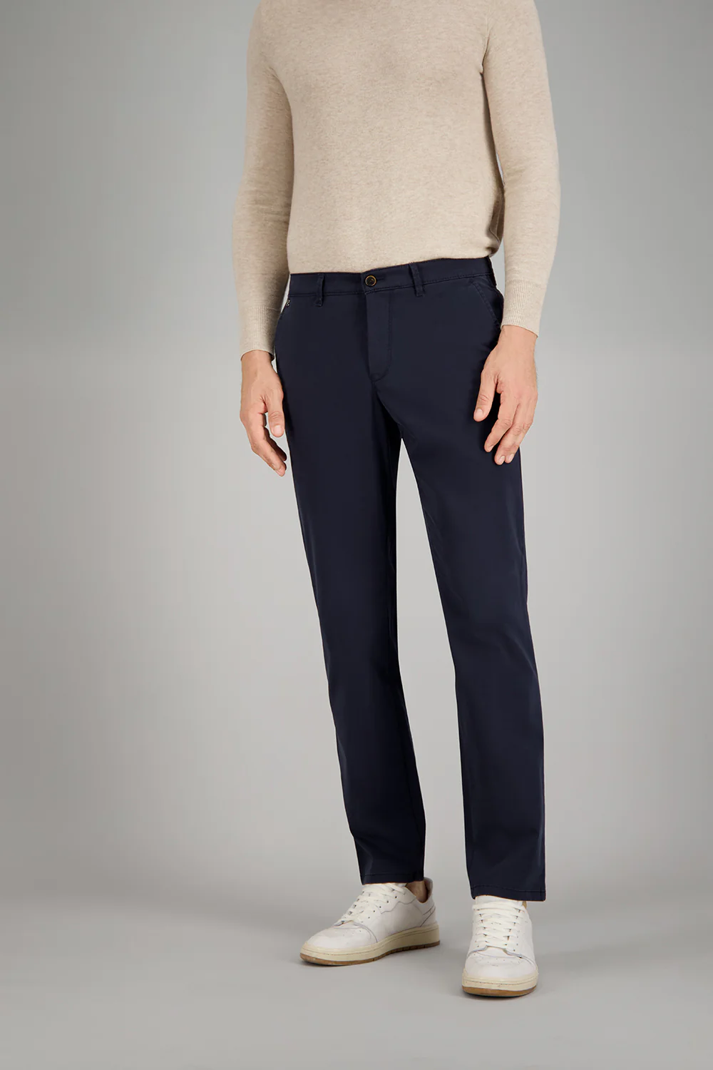 Le chino BENITO de couleur marine allie un style sportif à une élégance sobre. Fabriqué en satin de coton de haute qualité, il convainc par sa coupe moderne, sa liberté de mouvement et sa stabilité dimensionnelle. Parfait pour les looks quotidiens décontractés et élégants.