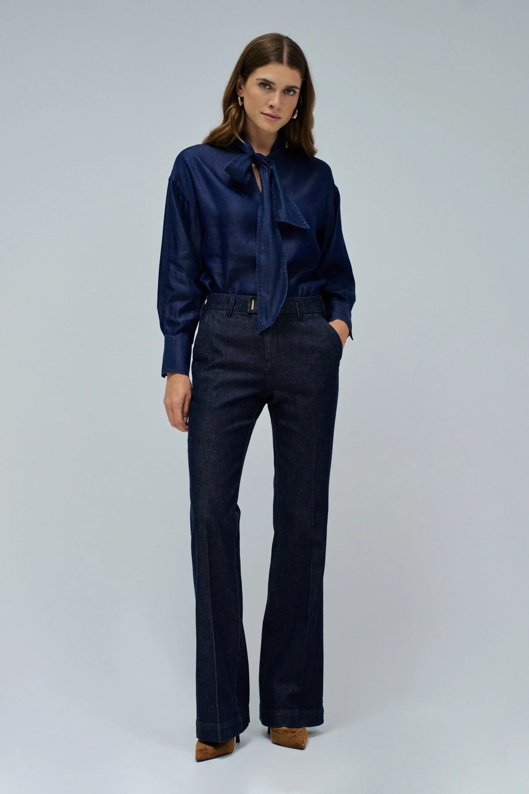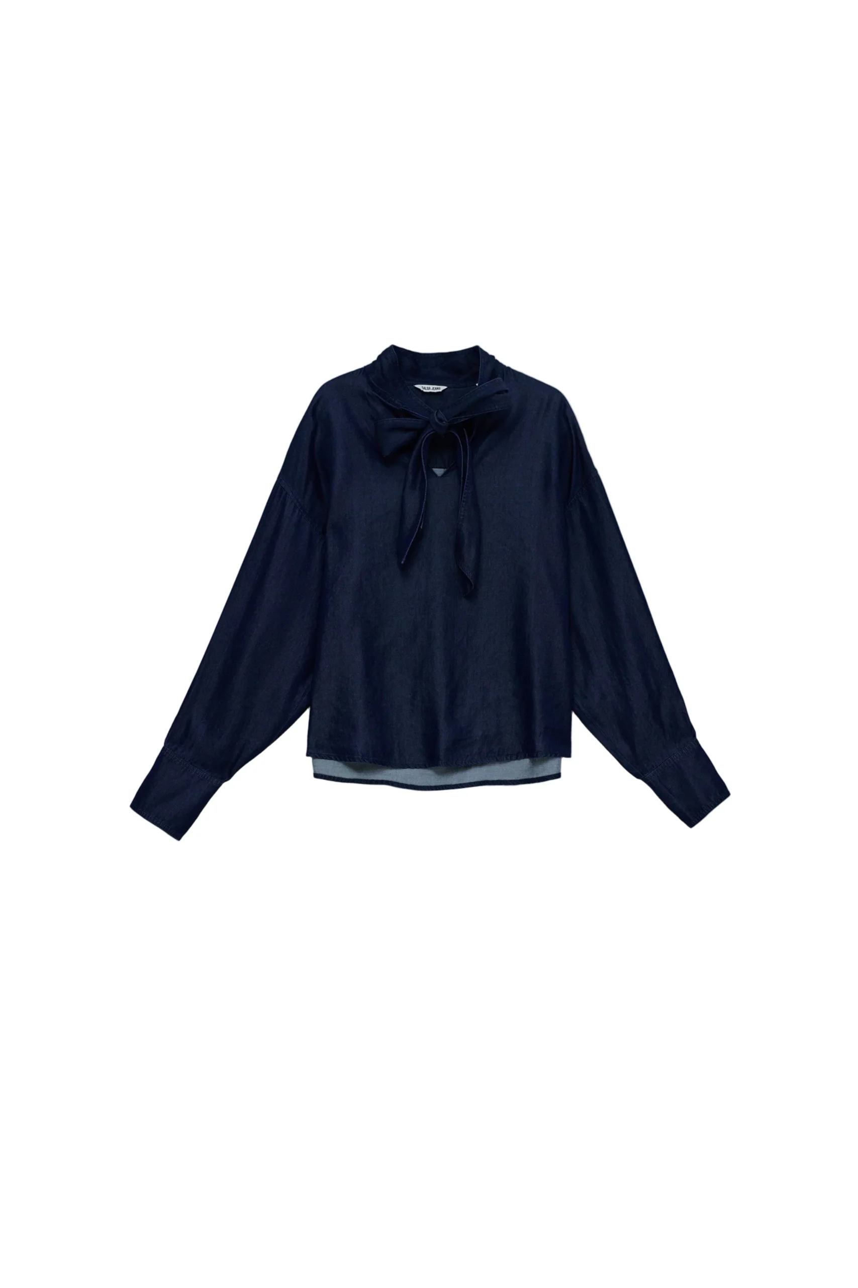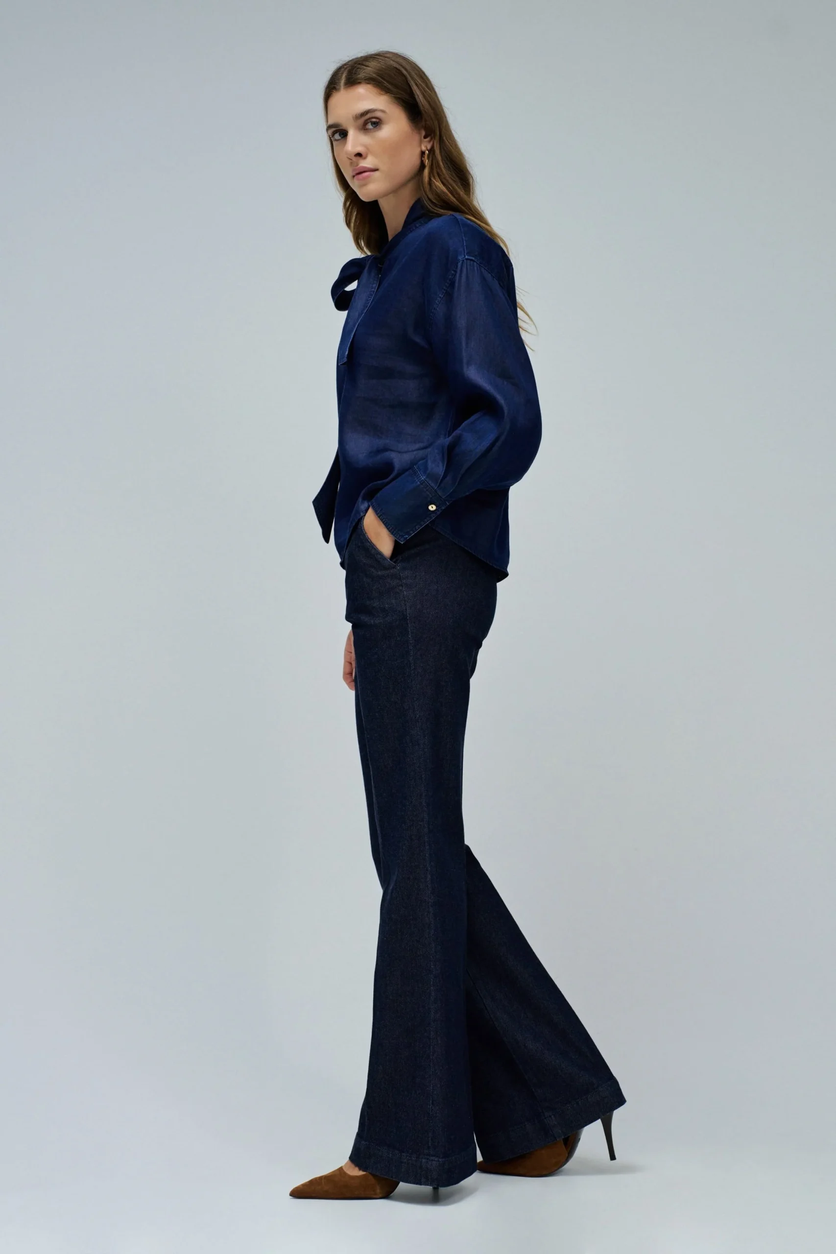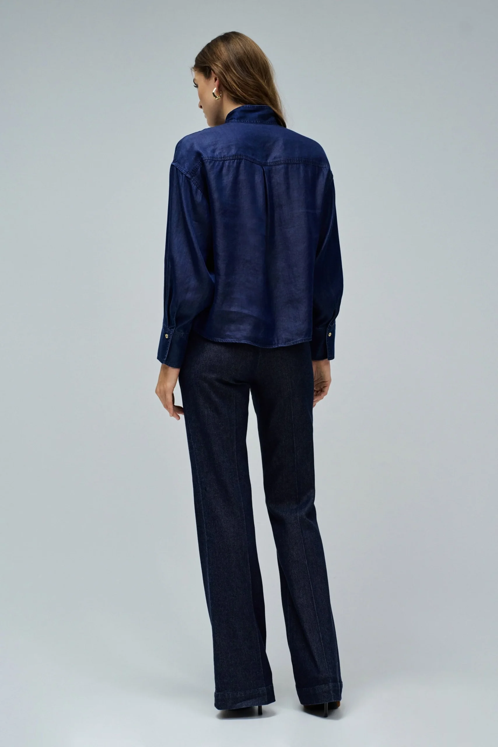 La blouse W/ Lace in Dark Wash en lyocell doux séduit par son aspect denim raffiné et son design féminin.
