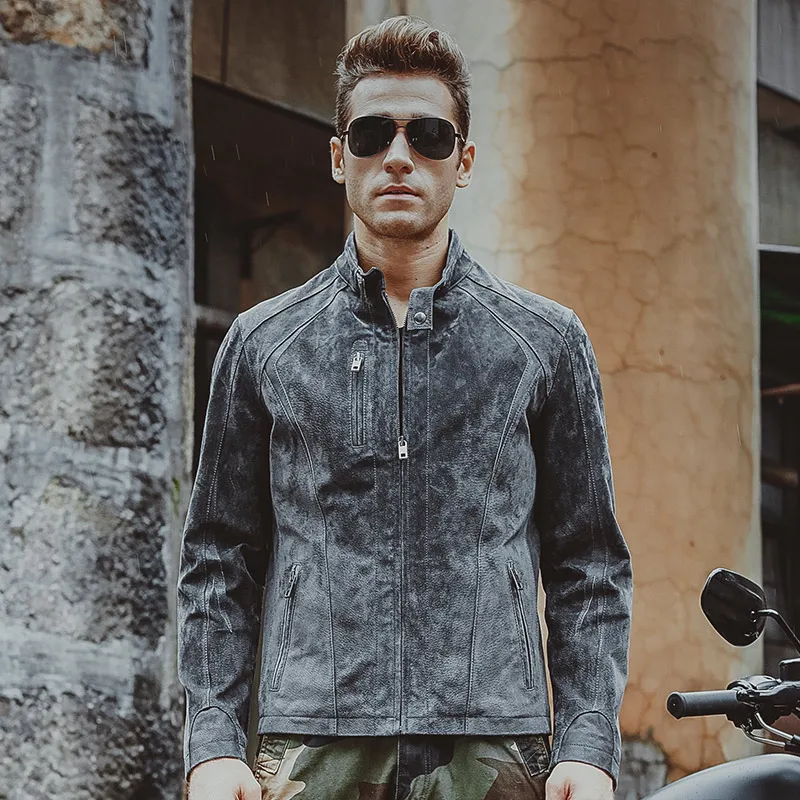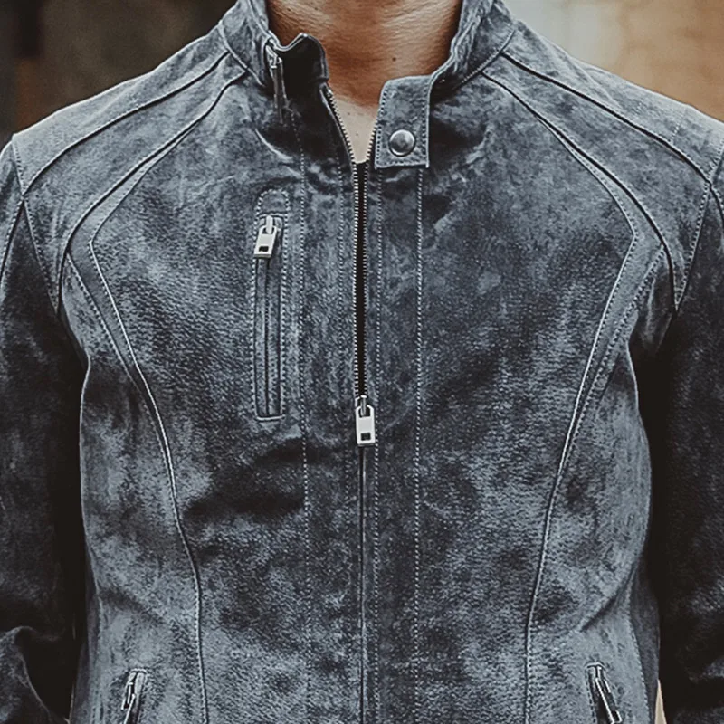 Blouson d’hiver moto cuir homme gris, chaud et confortable. Style biker sobre et élégant, idéal pour l’hiver et le quotidien ou comme idée cadeau motard.