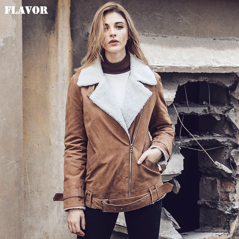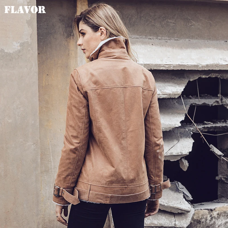 Blouson moto cuir femme marron doublé – Style élégant hiver