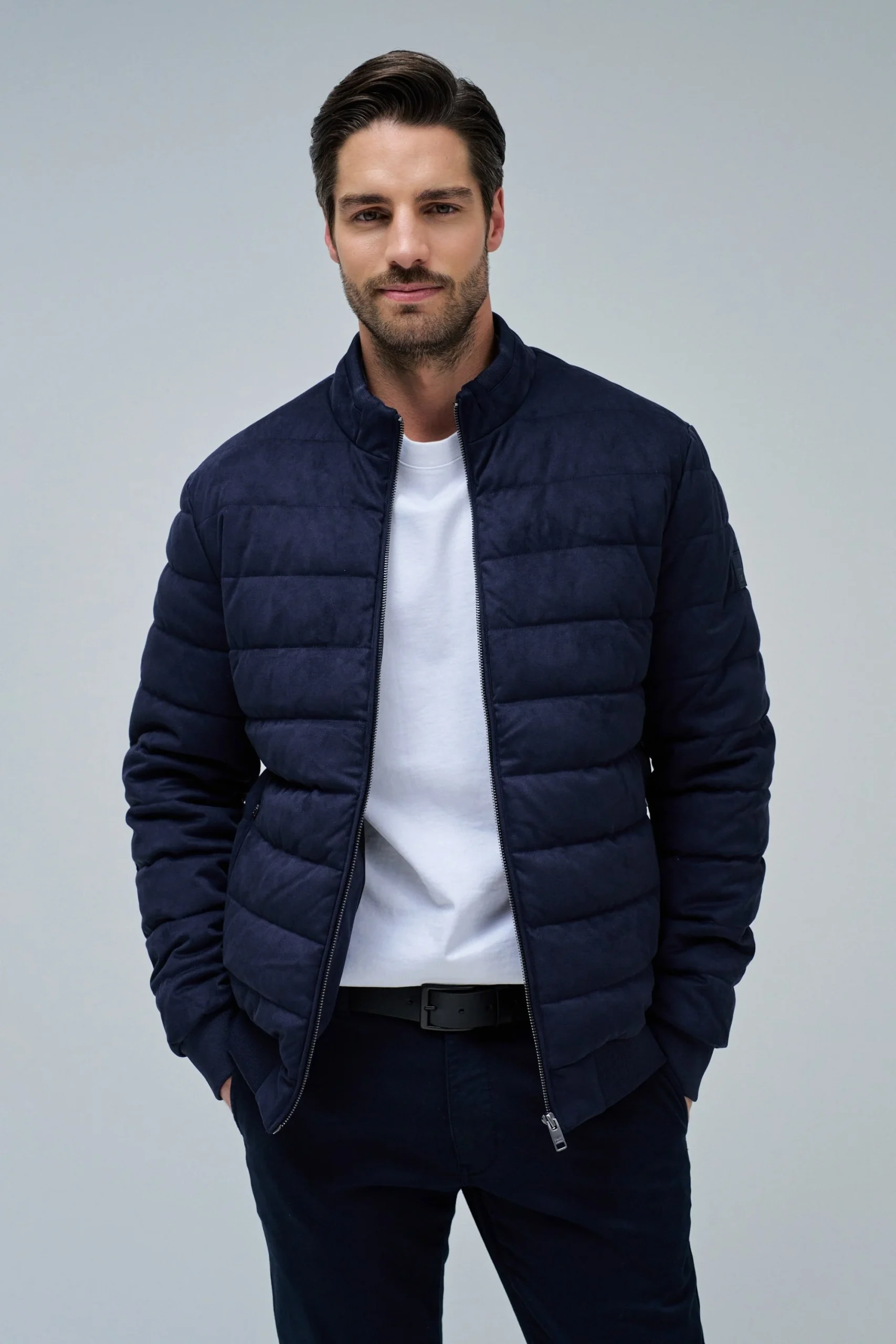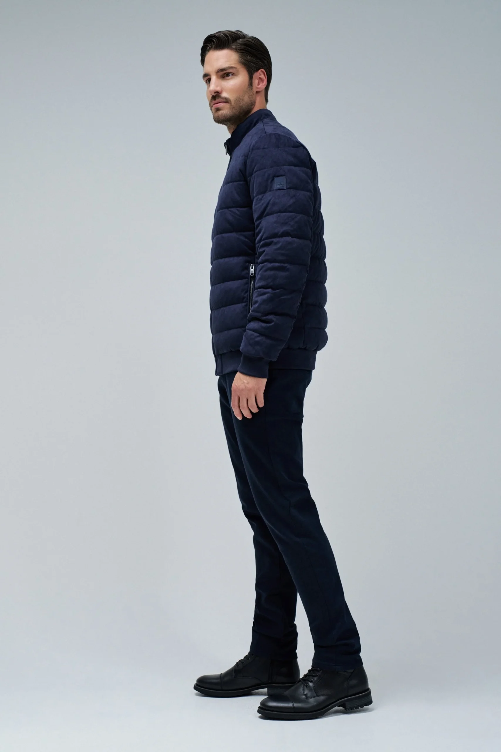 Bomber en daim bleu foncé