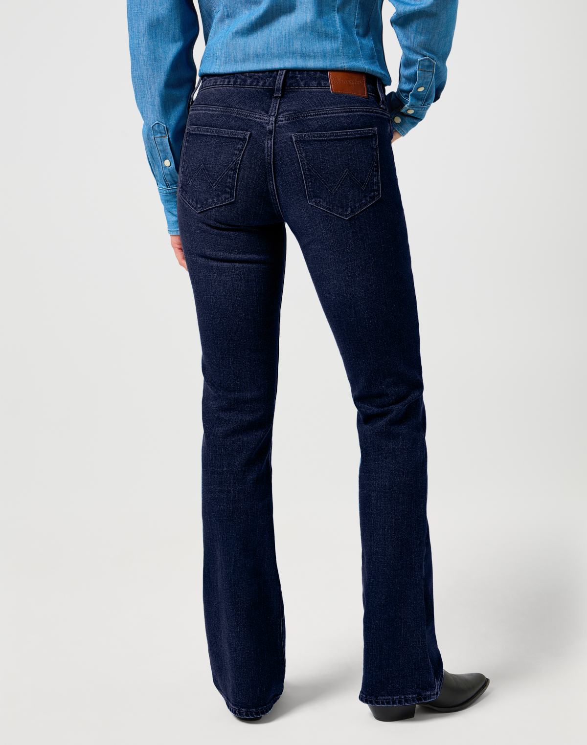 Le design classique à 5 poches, le patch en cuir Wrangler et les grandes poches arrière soulignent la silhouette et allient tradition et style contemporain.