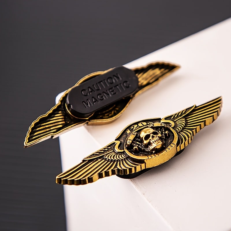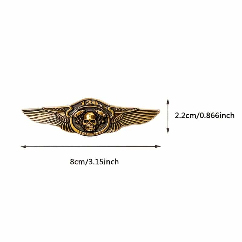 Broche Motard Vintage 120e Anniversaire – Insigne Crâne et Ailes en Zinc – Accessoire Rétro pour Sacs, Vestes et Jeans