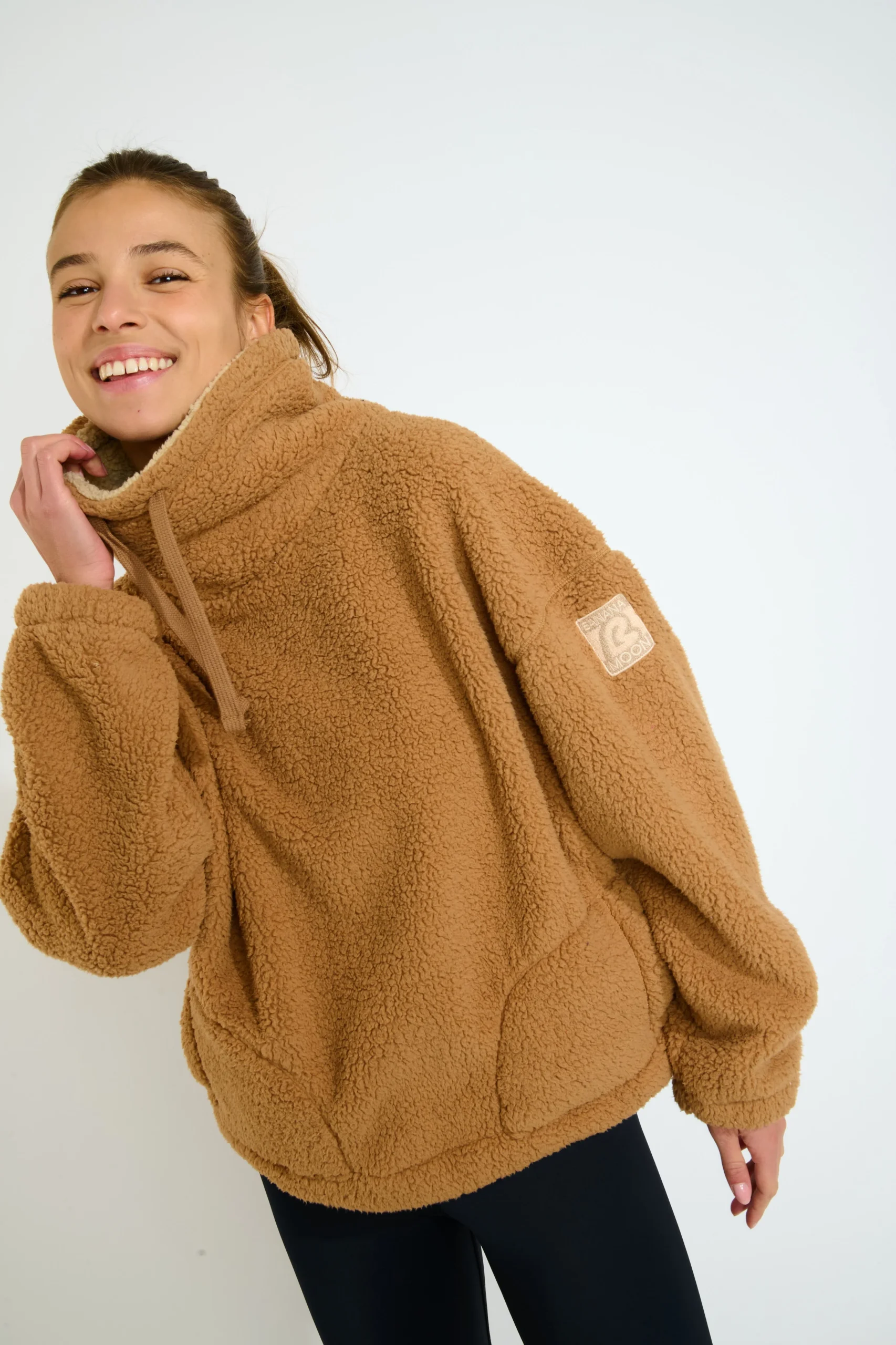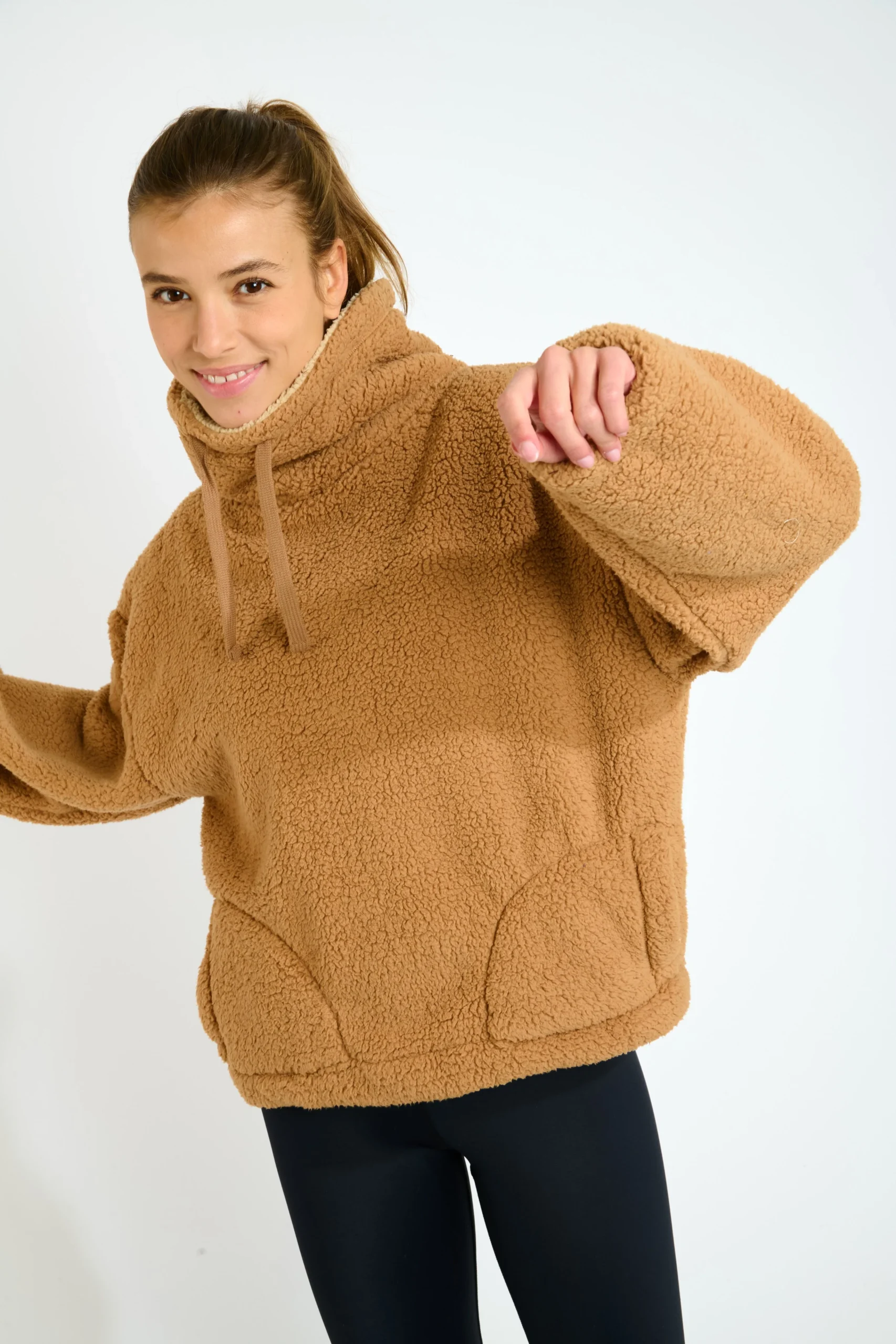 Le pull CHIMNEY-IGLOO en camel offre un confort douillet avec une touche sportive.