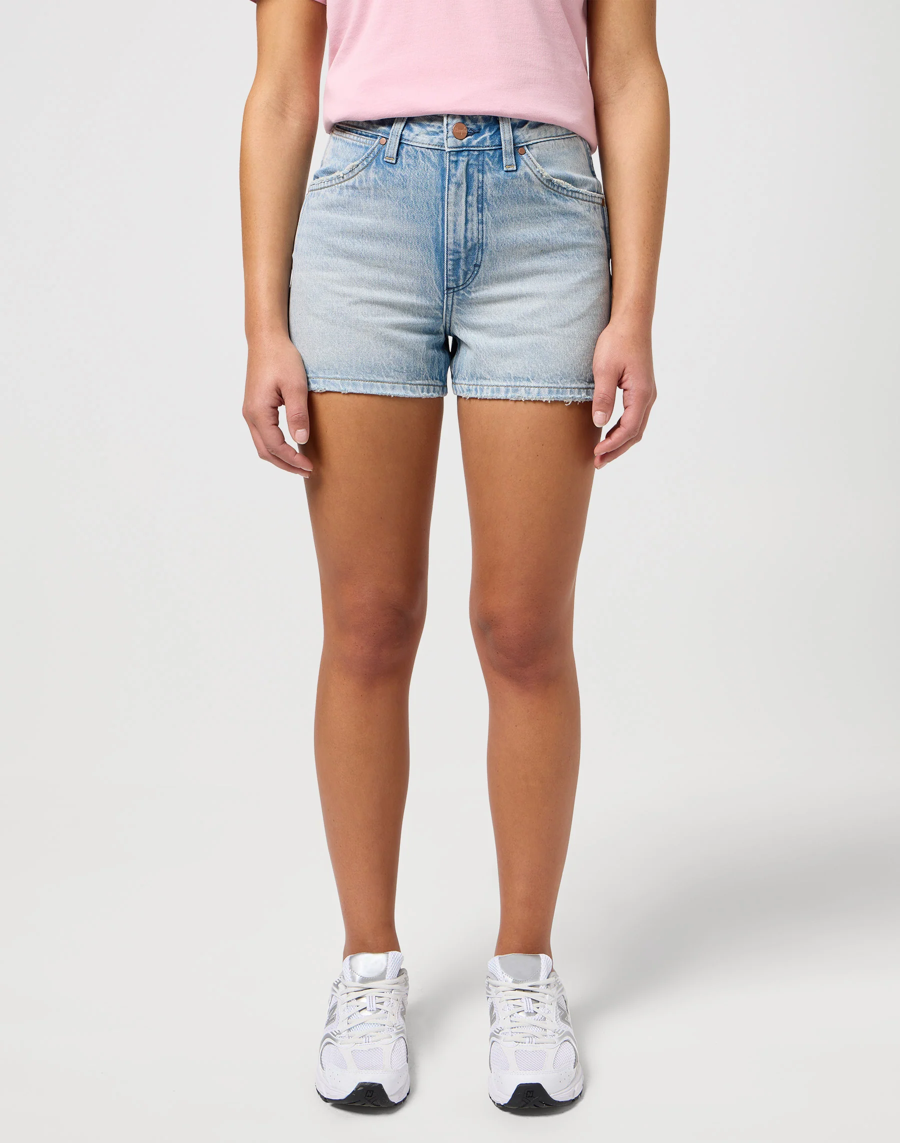 Ce short à la coupe décontractée d’un bleu clair délavé est parfait pour les températures plus chaudes. La taille haute assure une coupe confortable et flatteuse, tandis que l’ourlet effiloché se distingue par son charme robuste.