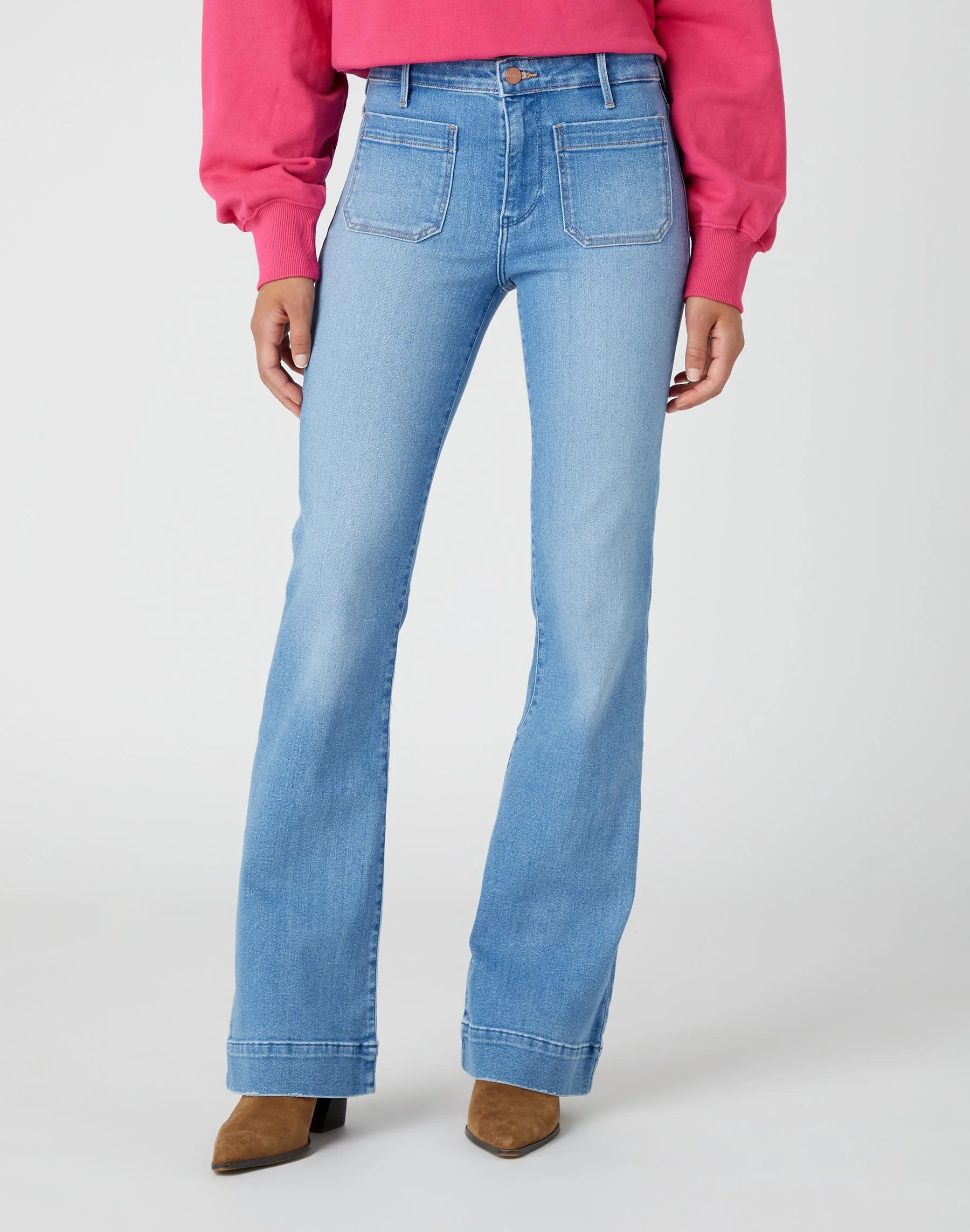 Notre jean flare caractéristique de style rétro est un complément idéal aux tenues actuelles. En denim bleu avec une proportion moyenne de stretch et deux poches avant.
