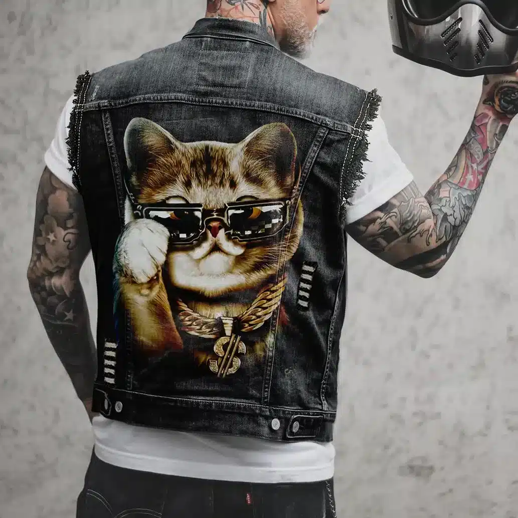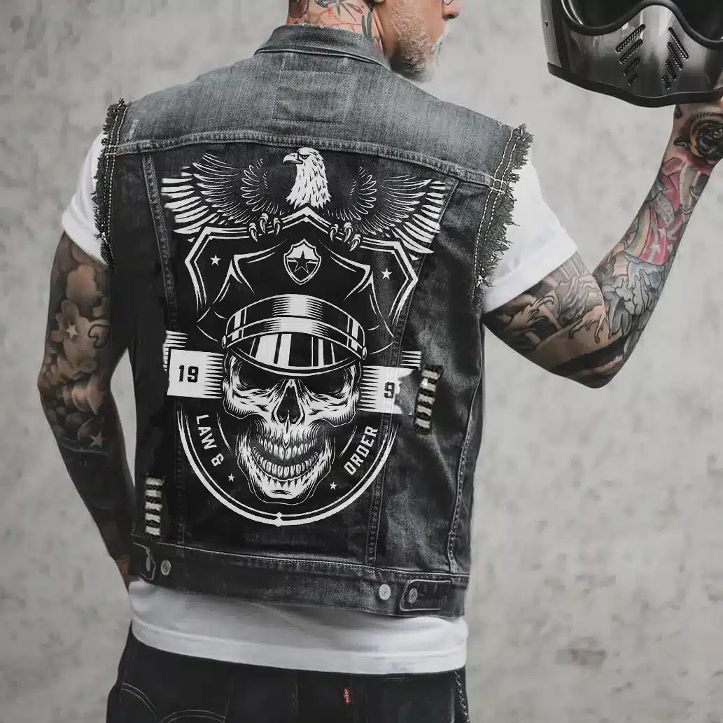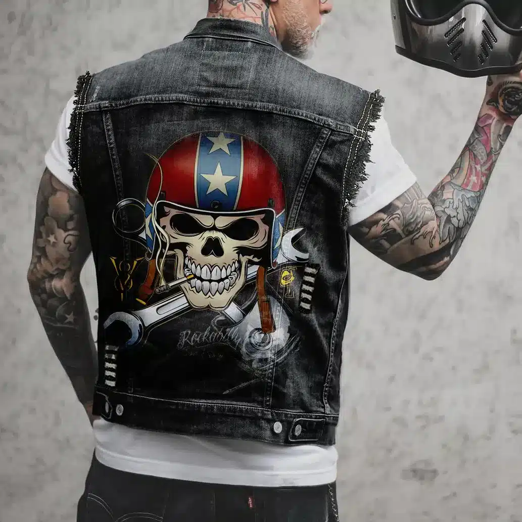 Gilet Biker Pirate – Veste Sans Manches Jean Motard Vintage