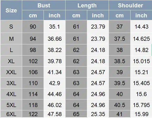 Grandes tailles : jusqu’à 6XL pour s’adapter à tous les gabarits.