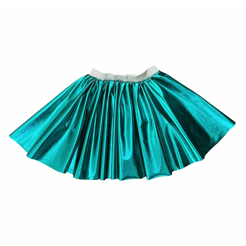 » Maman, est-ce que je peux avoir une jupe qui tourne ET qui brille? » Tadam! Ła petite dernière de Ratatam! Une jupe métallisée à taille élastique qui tourne à fond les ballons! Disponible en or, vert, et violet!