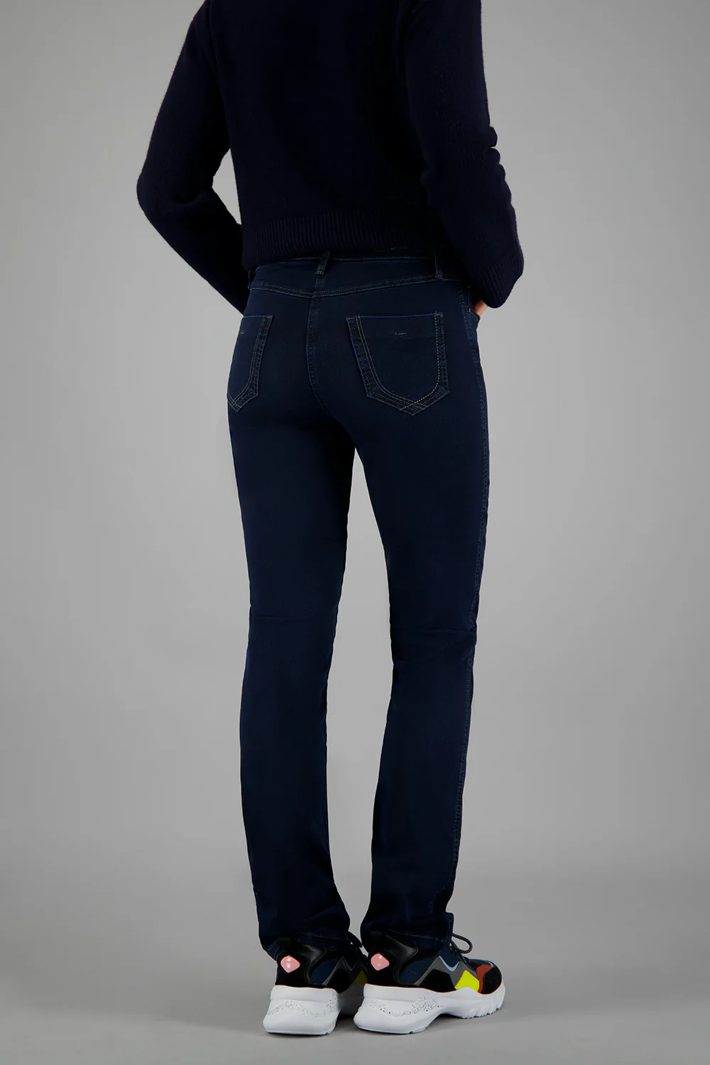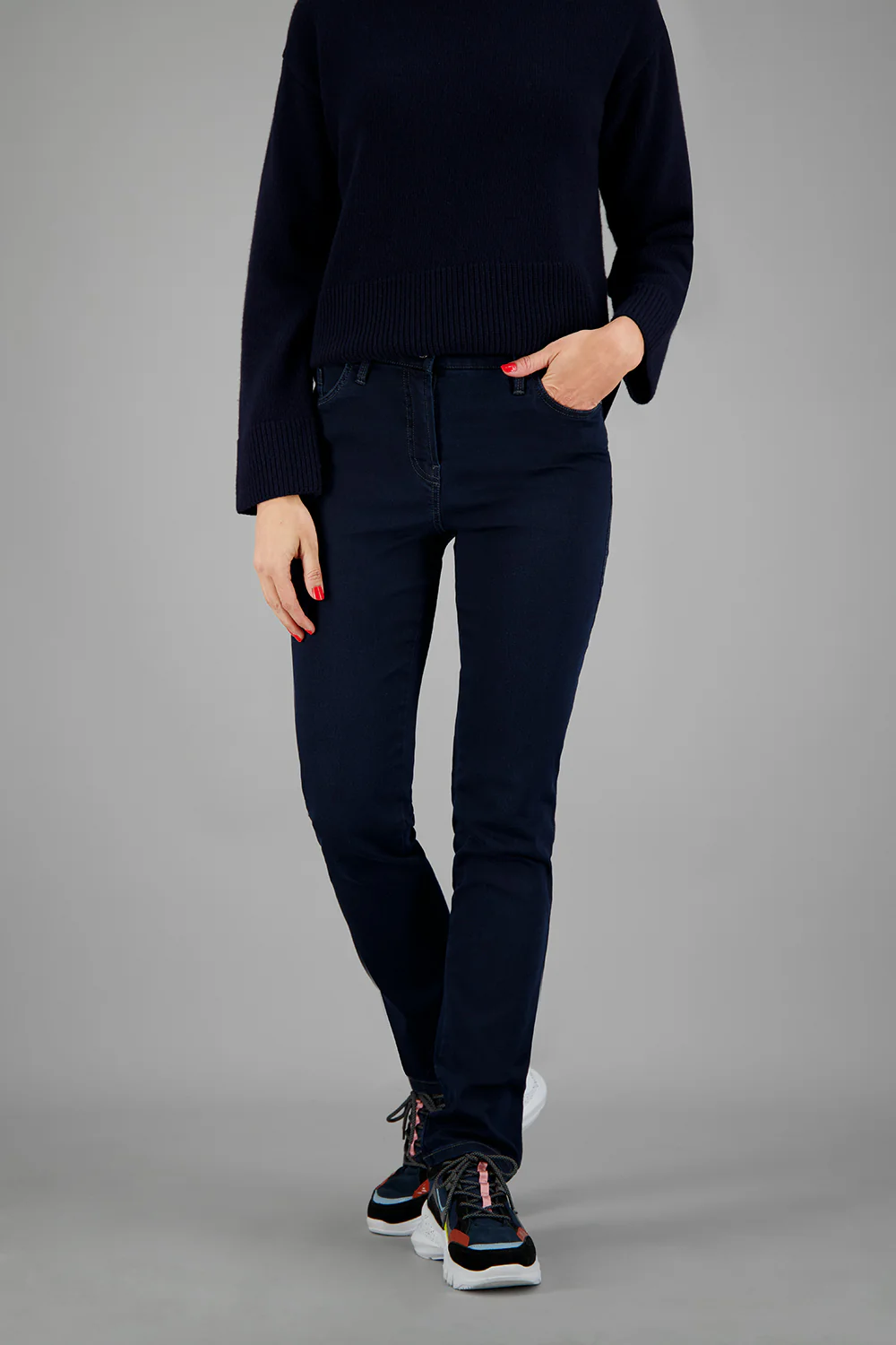 Le jeans MAJA4 en Blue Black allie une coupe slim moderne à un confort de port agréable. Le stretch moyen assure la liberté de mouvement, tandis que la couleur bleu foncé se combine de multiples façons. – Slim Fit – Stretch moyen – Style 5 poches