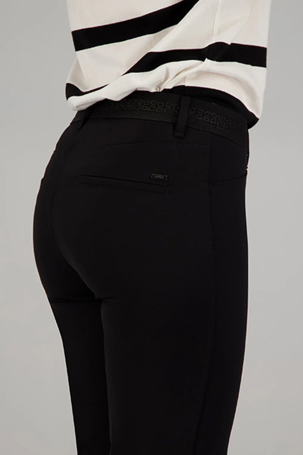 Grâce à la taille haute et à l’élastique, il est confortable et flatteur. Les poches latérales et les poches passepoilées à l’arrière assurent la fonctionnalité, tandis que le pli à la taille confère une note d’élégance au look.