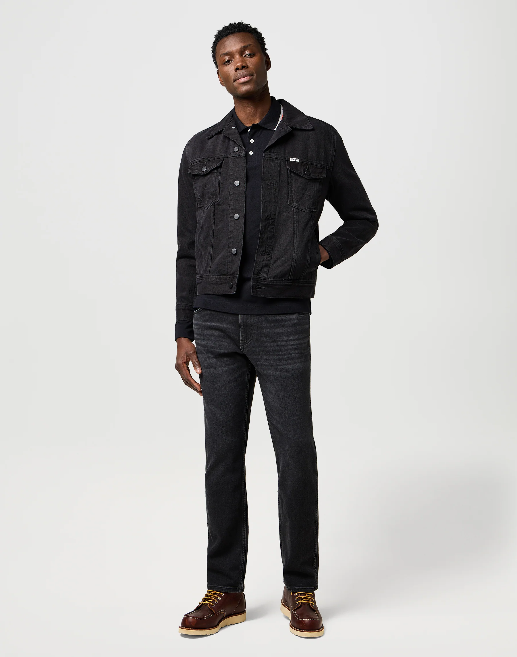 Doté d’un col côtelé pointu, de passepoils contrastés au col et aux manches, d’un ourlet droit et d’un écusson logo discret sur la poitrine gauche.