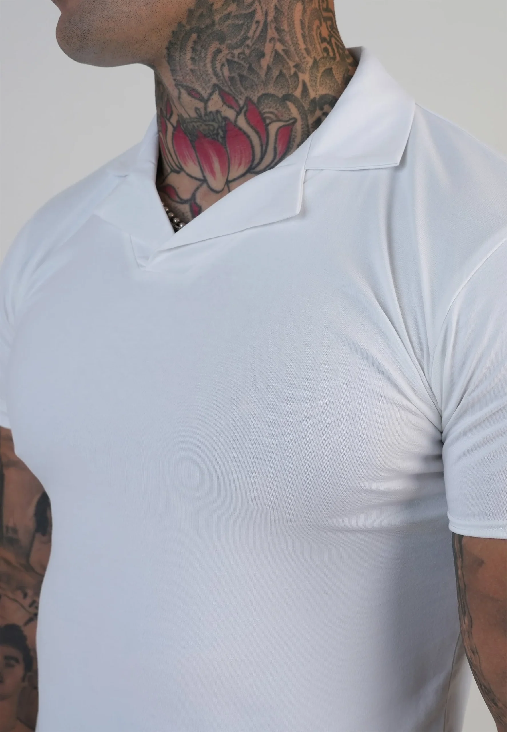 Le polo Revere en blanc convainc par sa coupe musclée moderne et ses lignes claires.