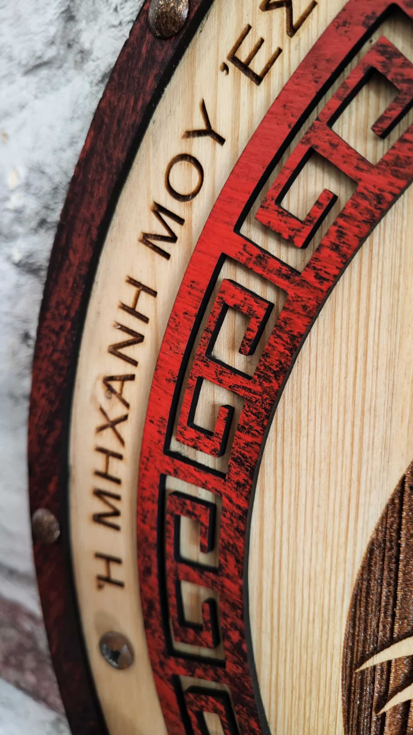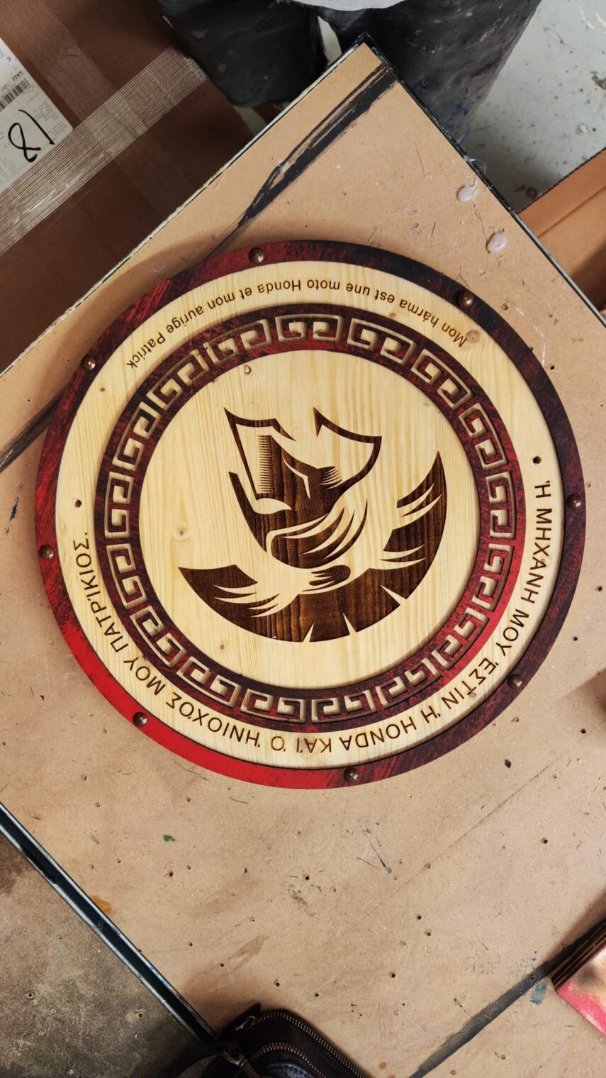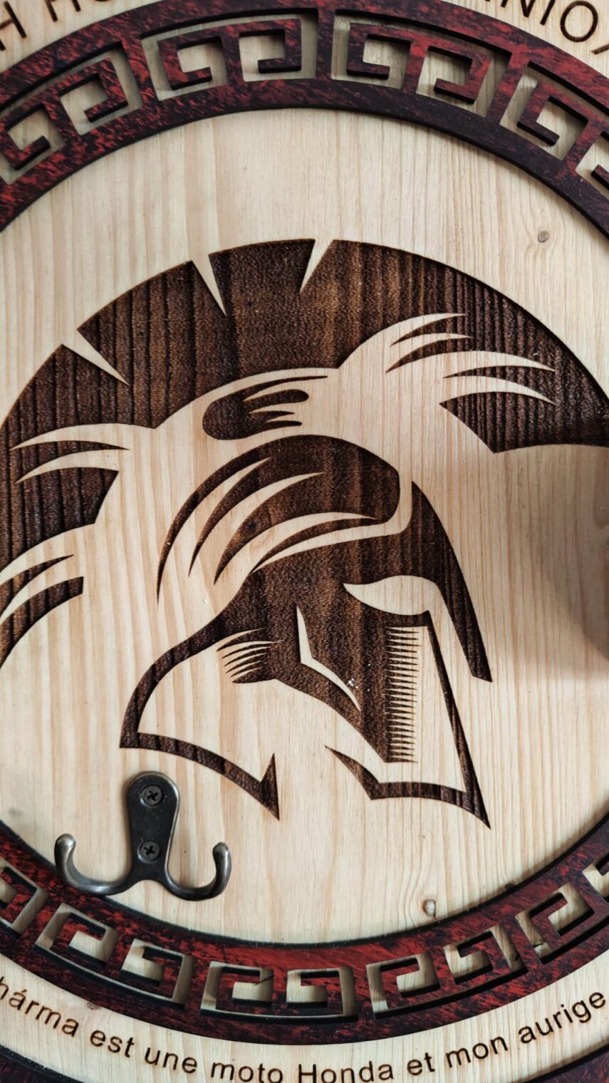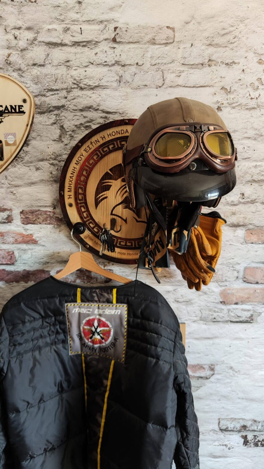 Ce Porte-Casque Style Spartiate est bien plus qu’un simple accessoire pour votre casque de moto. Il représente une fusion artistique de matériaux recyclés et de bois naturel, inspirée par l’histoire antique. Le texte en vieux grec et la possibilité de personnalisation rendent chaque pièce unique, tout en faisant écho à la force et à la noblesse des guerriers spartiates.
