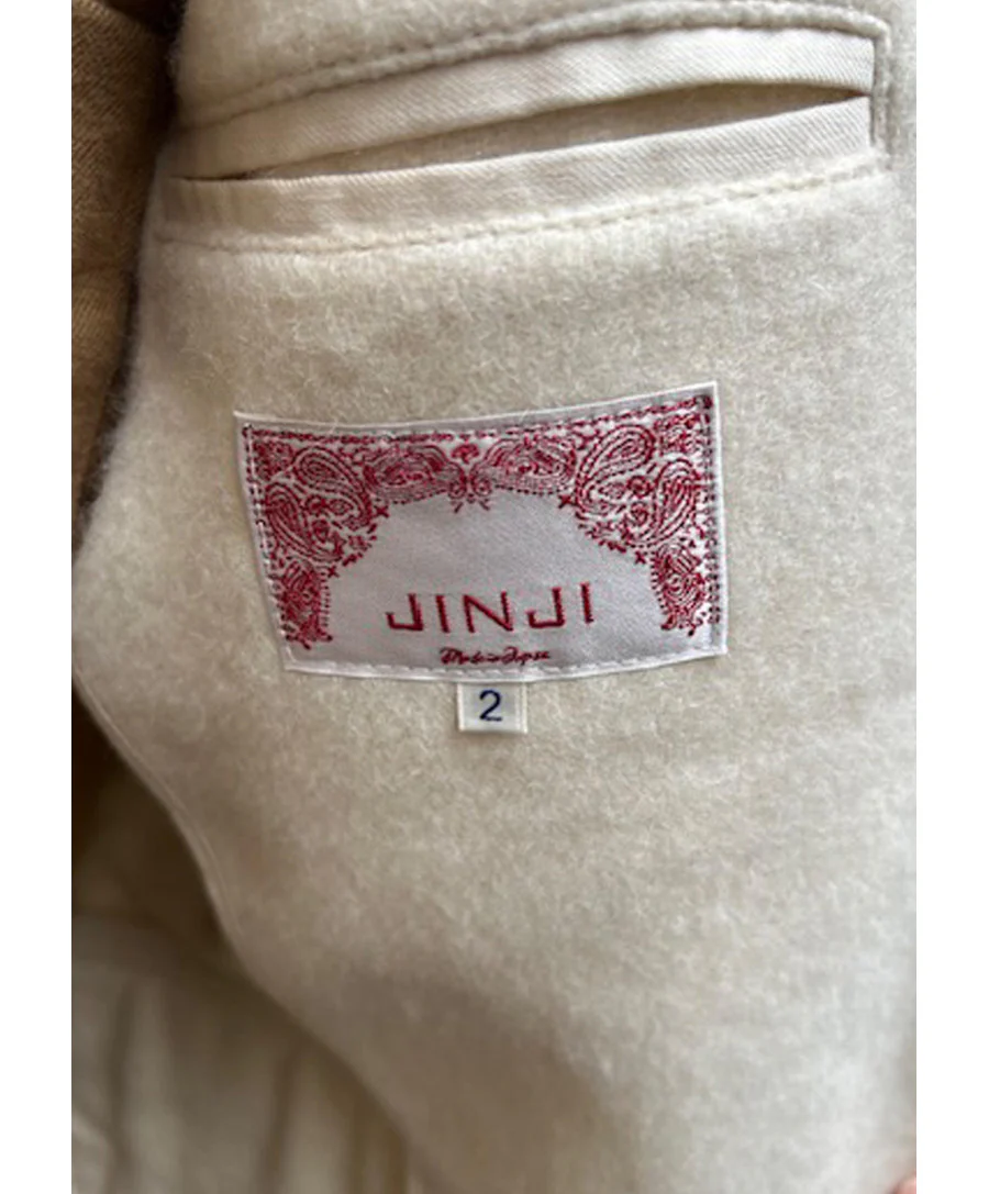 Veste Jinji fait au Japon. Très peu d’épaules pour porter décontracté sur une chemise ou un pull. 60% laine 30 % polyester 4% acrylique 3% rayon 3% nylon Ecru 2 boutons 2 fentes arrières Non doublé