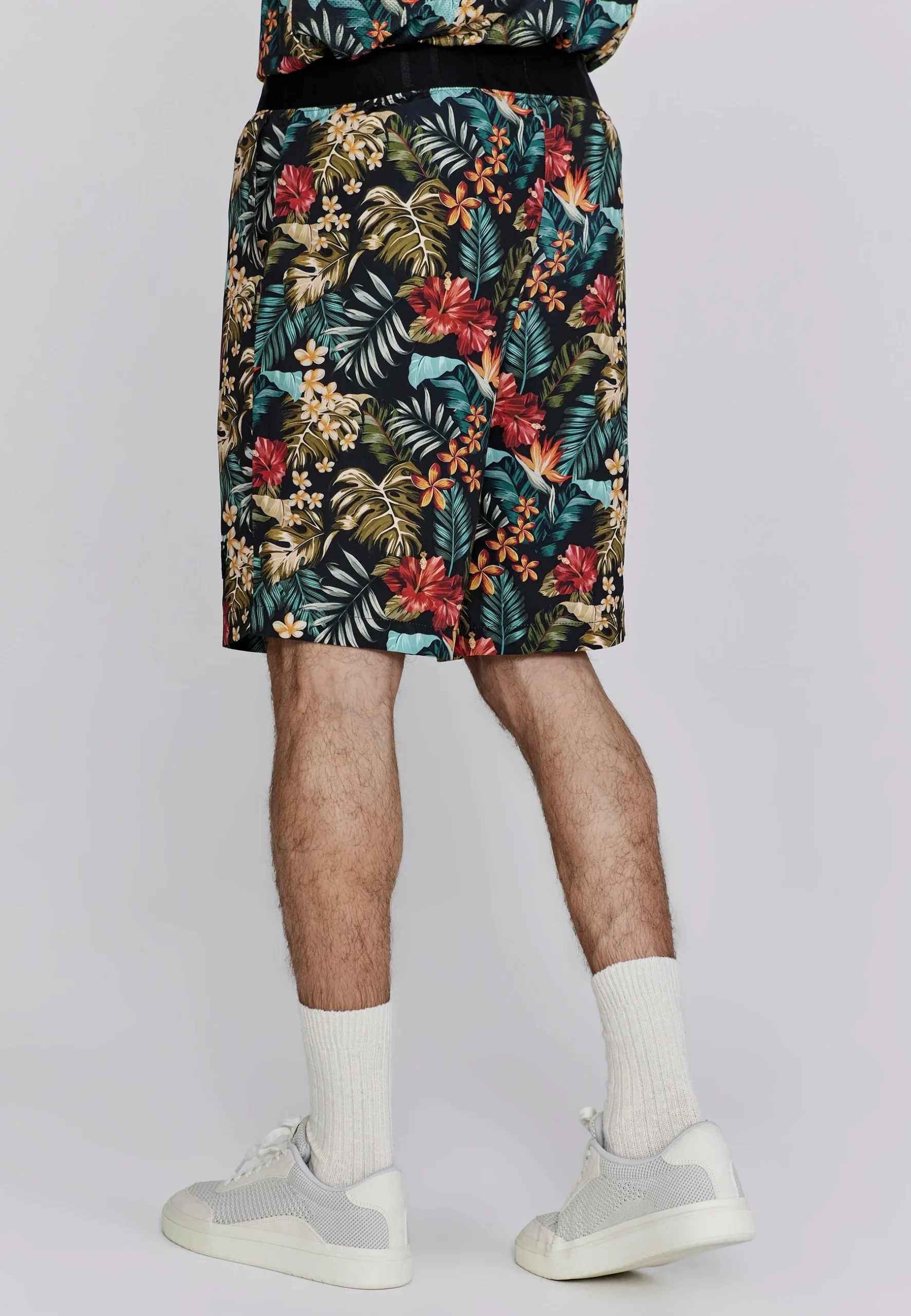 Le short Resort offre un confort optimal pour les journées chaudes grâce à son imprimé tropical allover et son tissu léger.