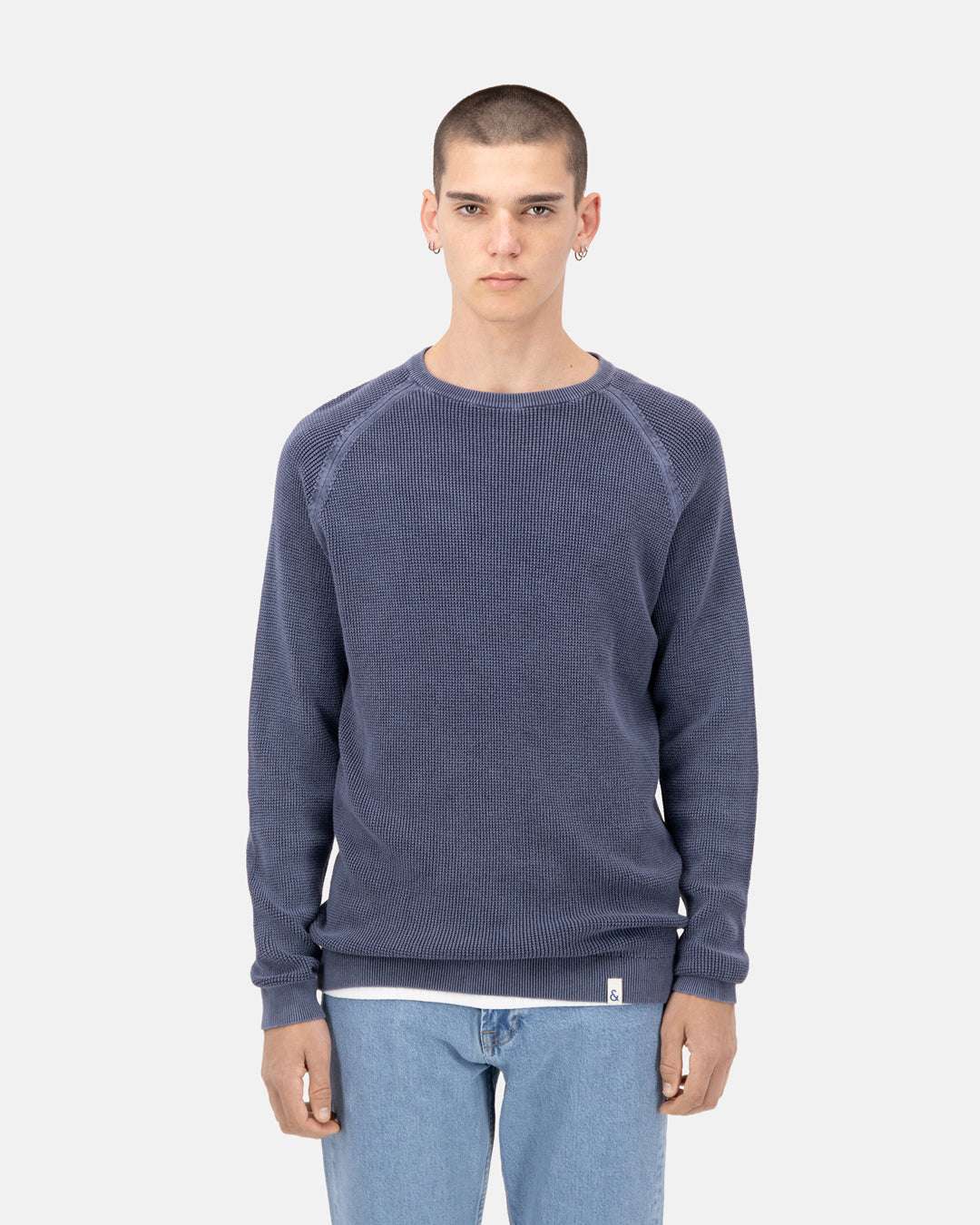 L’encolure ronde classique et les épaules raglan confèrent à ce pull bleu foncé une élégance intemporelle qui peut être combinée de multiples façons. Le léger délavage de la matière lui confère une touche décontractée et donne une impression de caractère vintage.