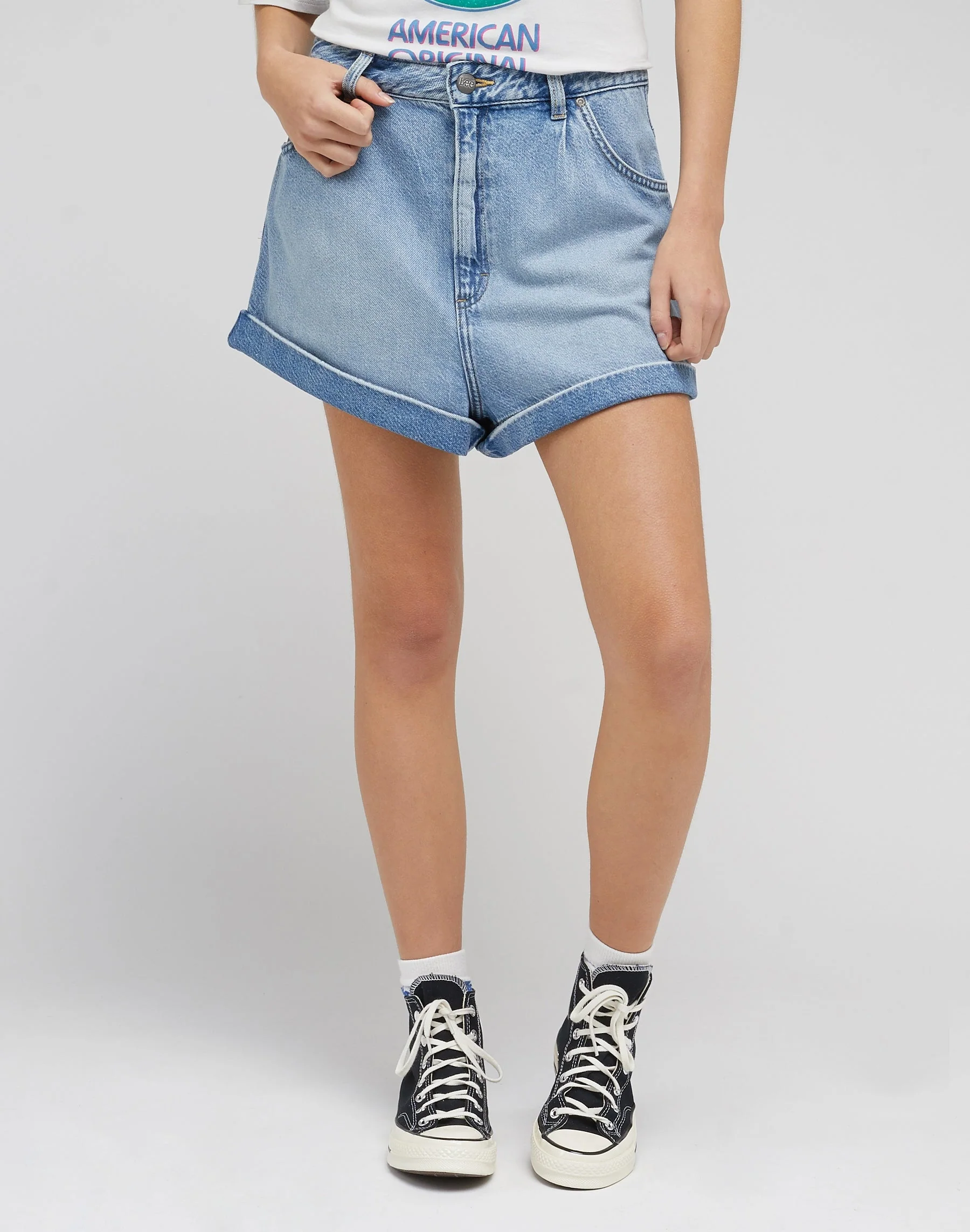 Ce short en denim magnifiquement confectionné, à taille haute et à la coupe décontractée, avec un ourlet à la taille et un détail plissé, donnera du style à ton été.