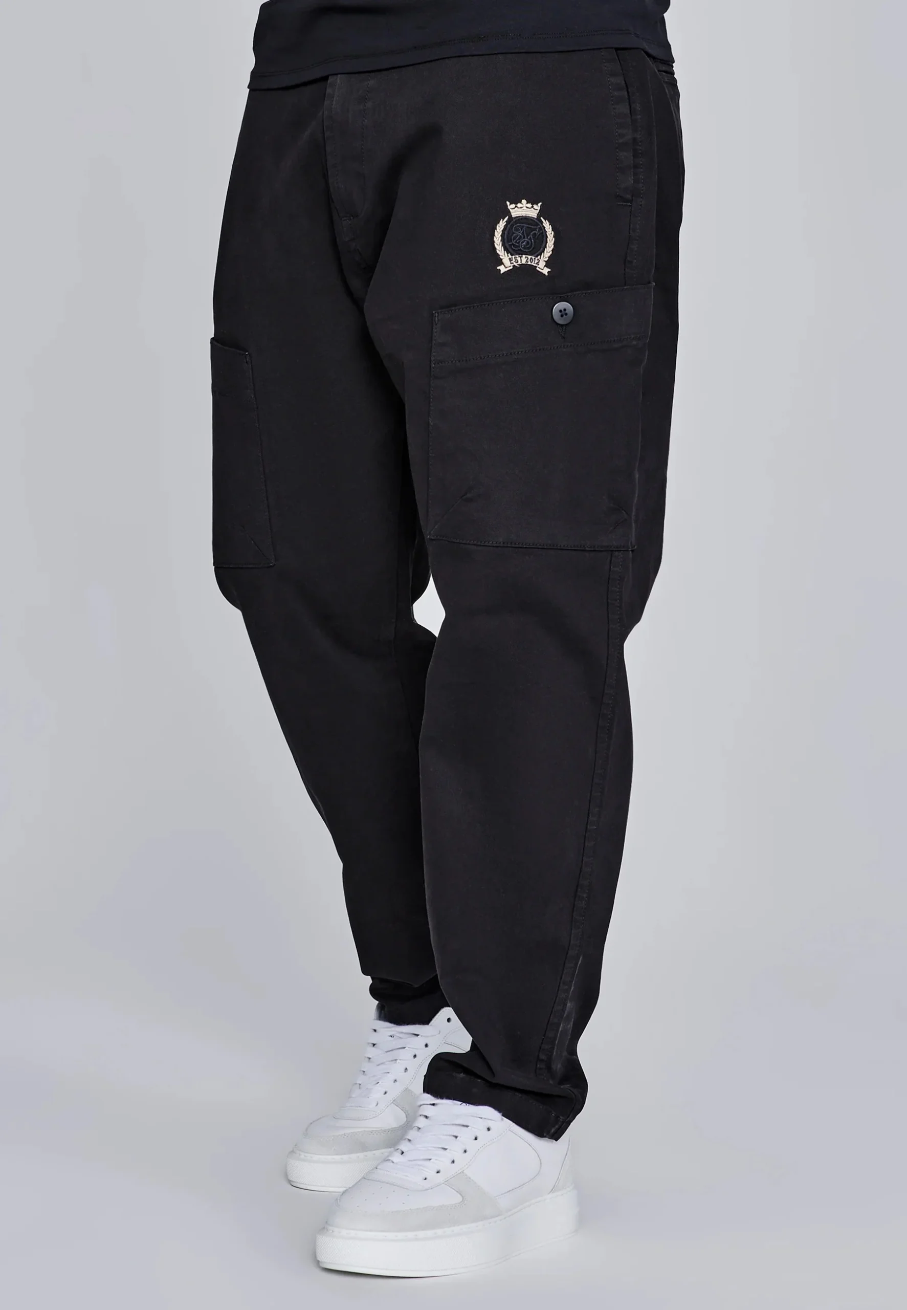 Des poches latérales et des poches cargo spacieuses soulignent le caractère utilitaire. Sur la cuisse gauche, un discret logo aux armoiries SikSilk complète le design.