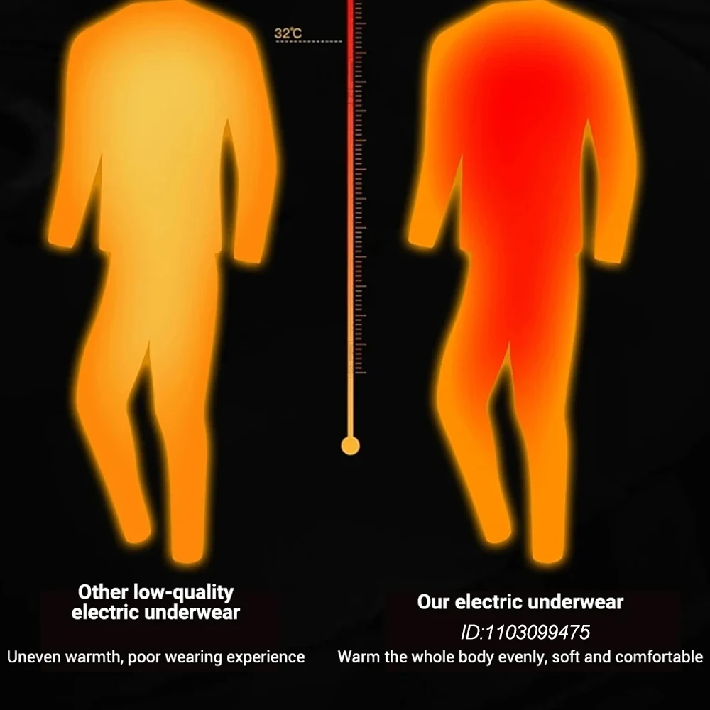 Sous-vêtement chauffant électrique 52 zones conçu pour affronter le froid intense. Ensemble thermique haut et bas diffusant une chaleur homogène, idéal pour la moto, le ski et les activités hivernales. Fonctionne avec batterie USB compatible.