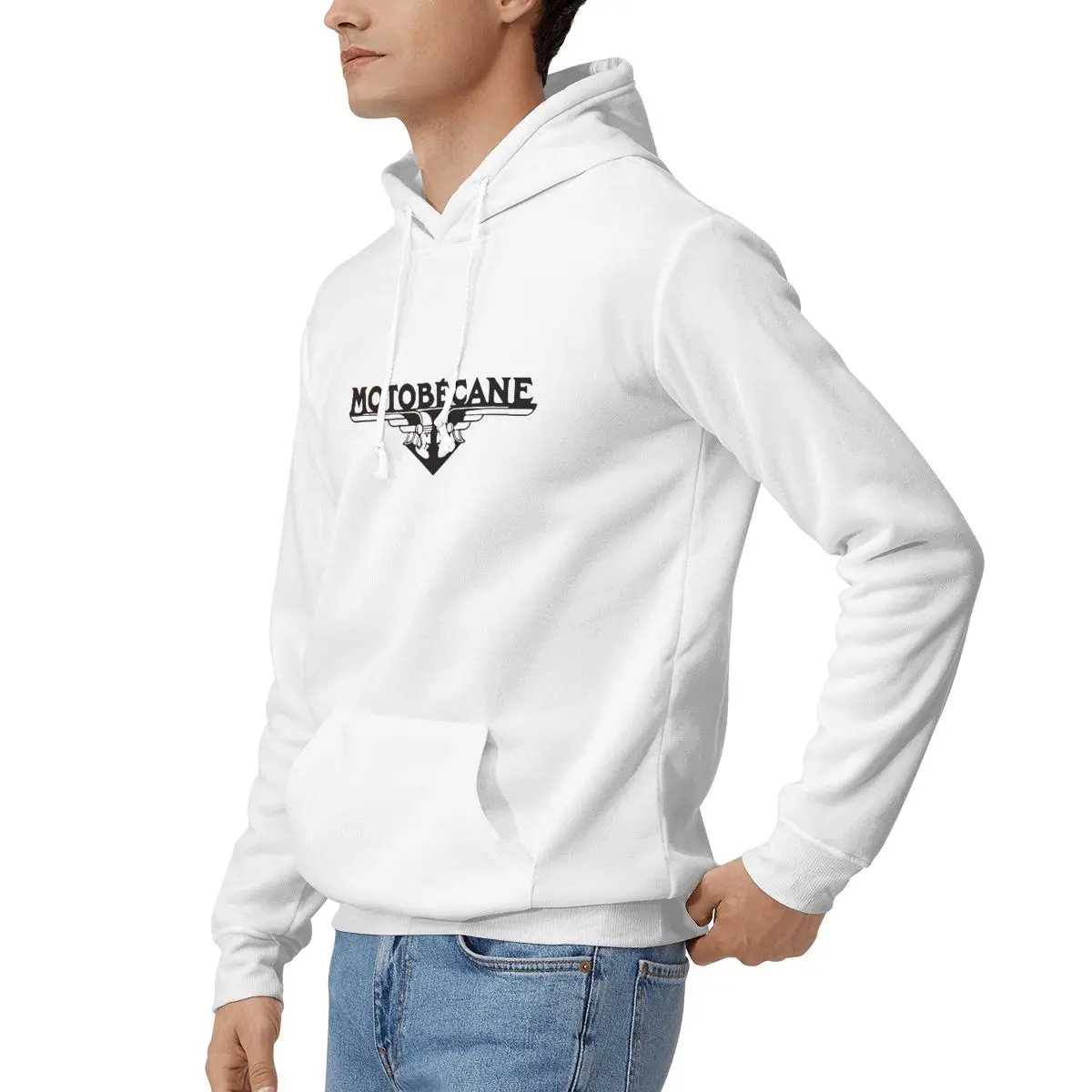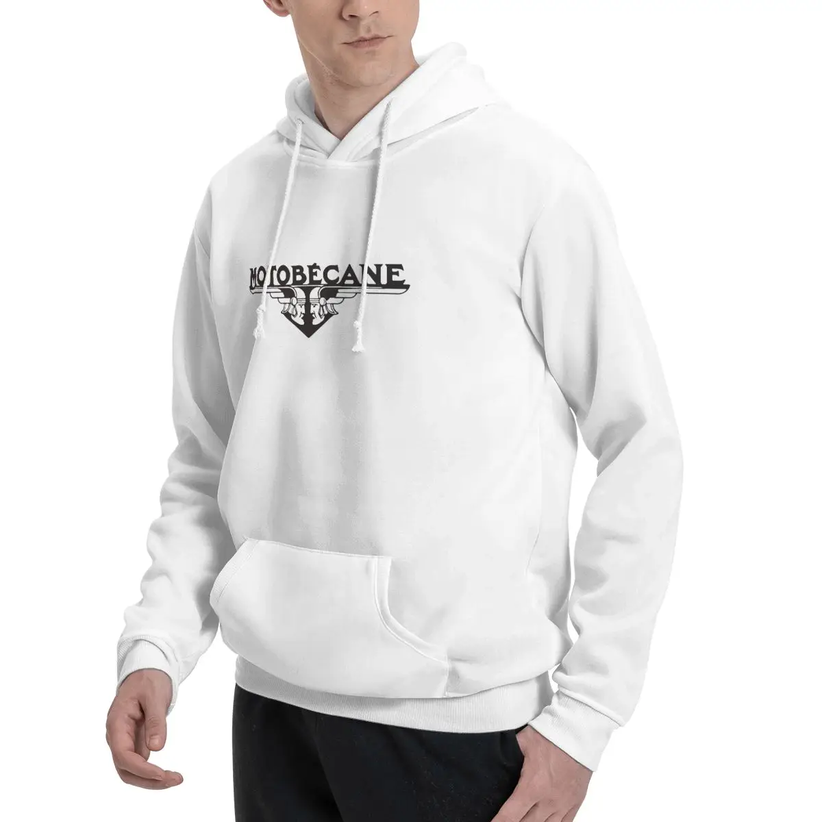 Sweat à capuche Motobécane blanc pour homme, coupe décontractée et logo vintage. Idéal pour les passionnés de moto rétro et les fans du style biker français.