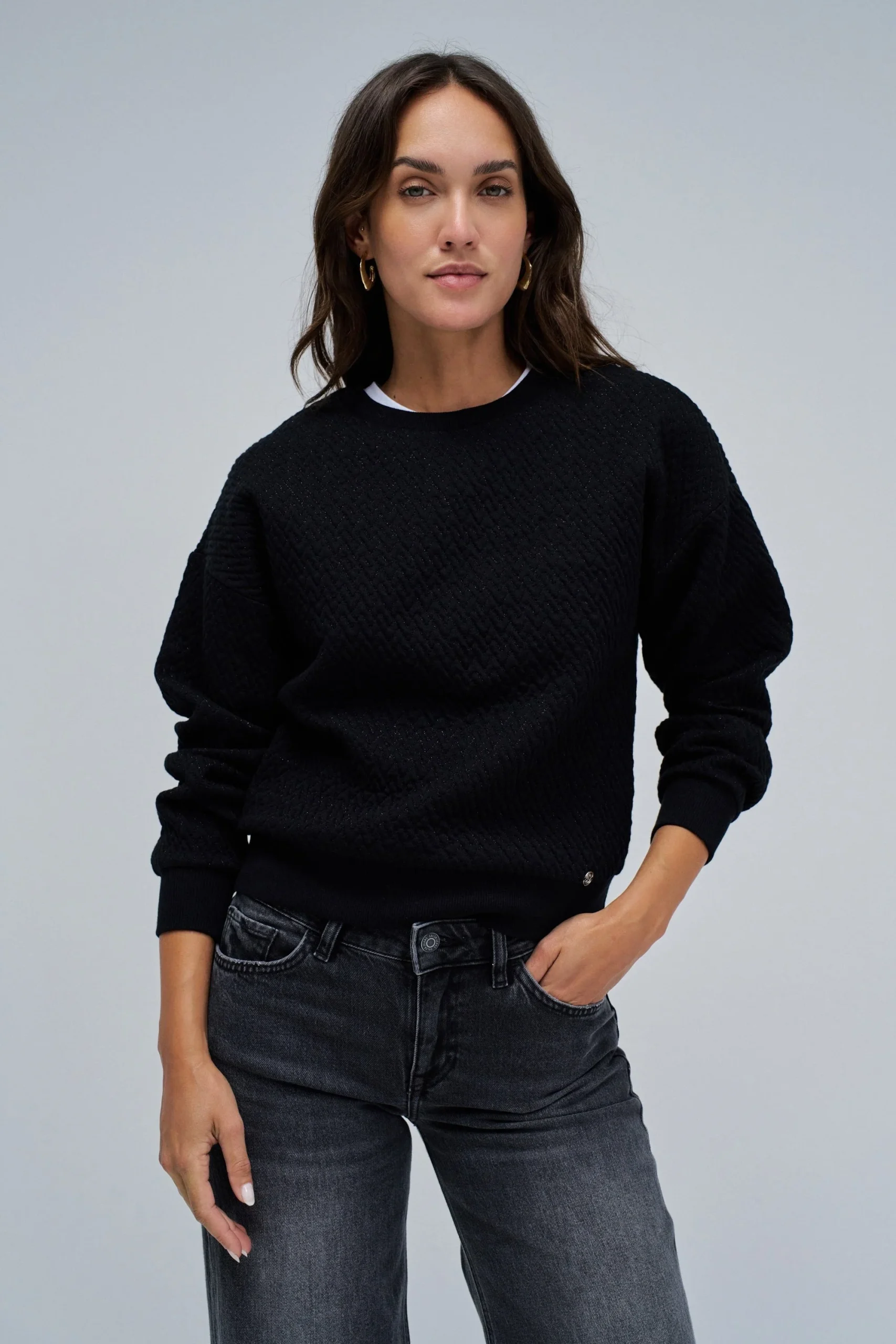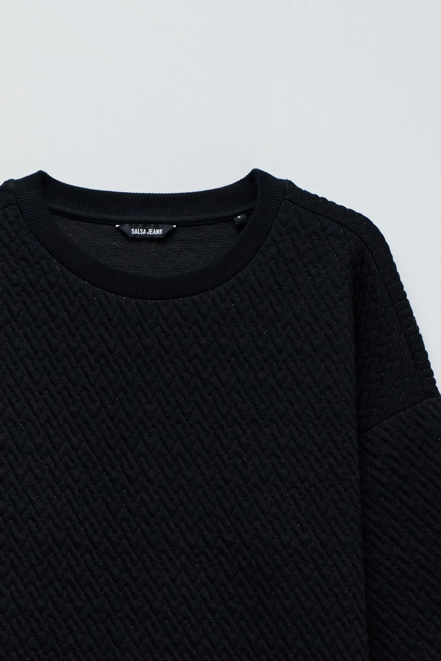 Ce sweat-shirt allie confort et glamour discret : le fin fil scintillant dans le jacquard lurex donne une lueur discrète, tandis que le doux tissu sweat est agréable à porter.