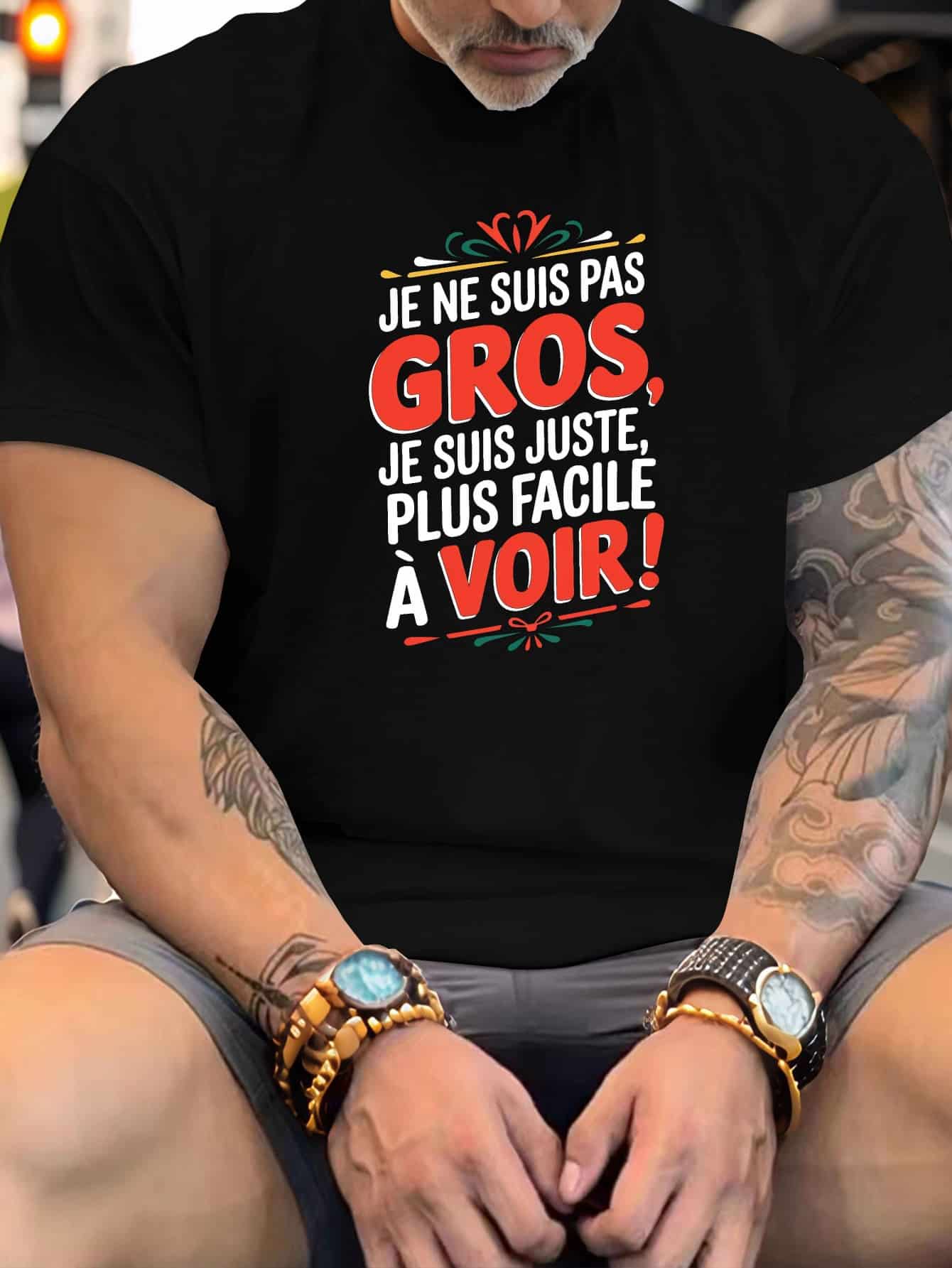 T-shirt d’été pour homme grande taille avec imprimé humoristique. Léger, respirant et confortable, parfait pour les hommes grands et forts cherchant un style décontracté et amusant.