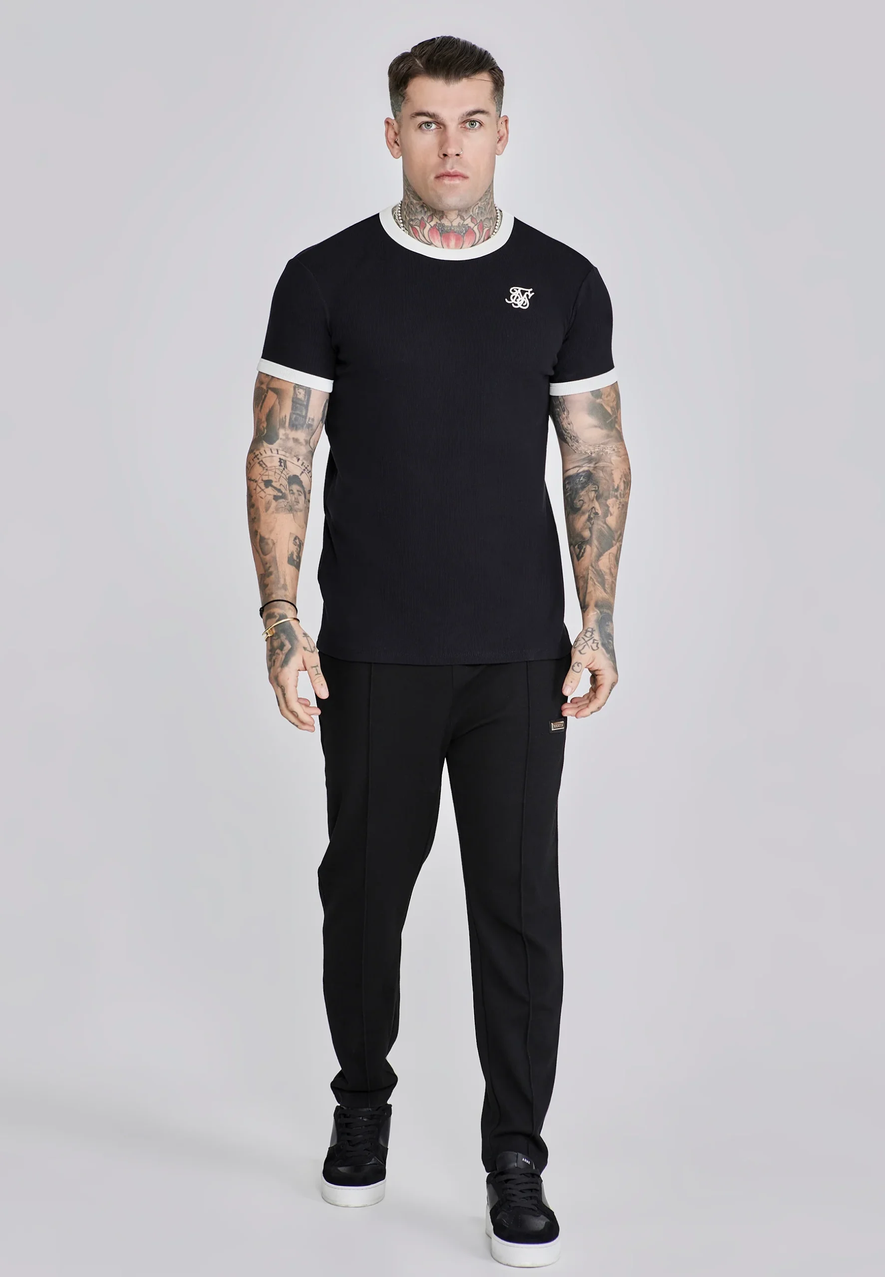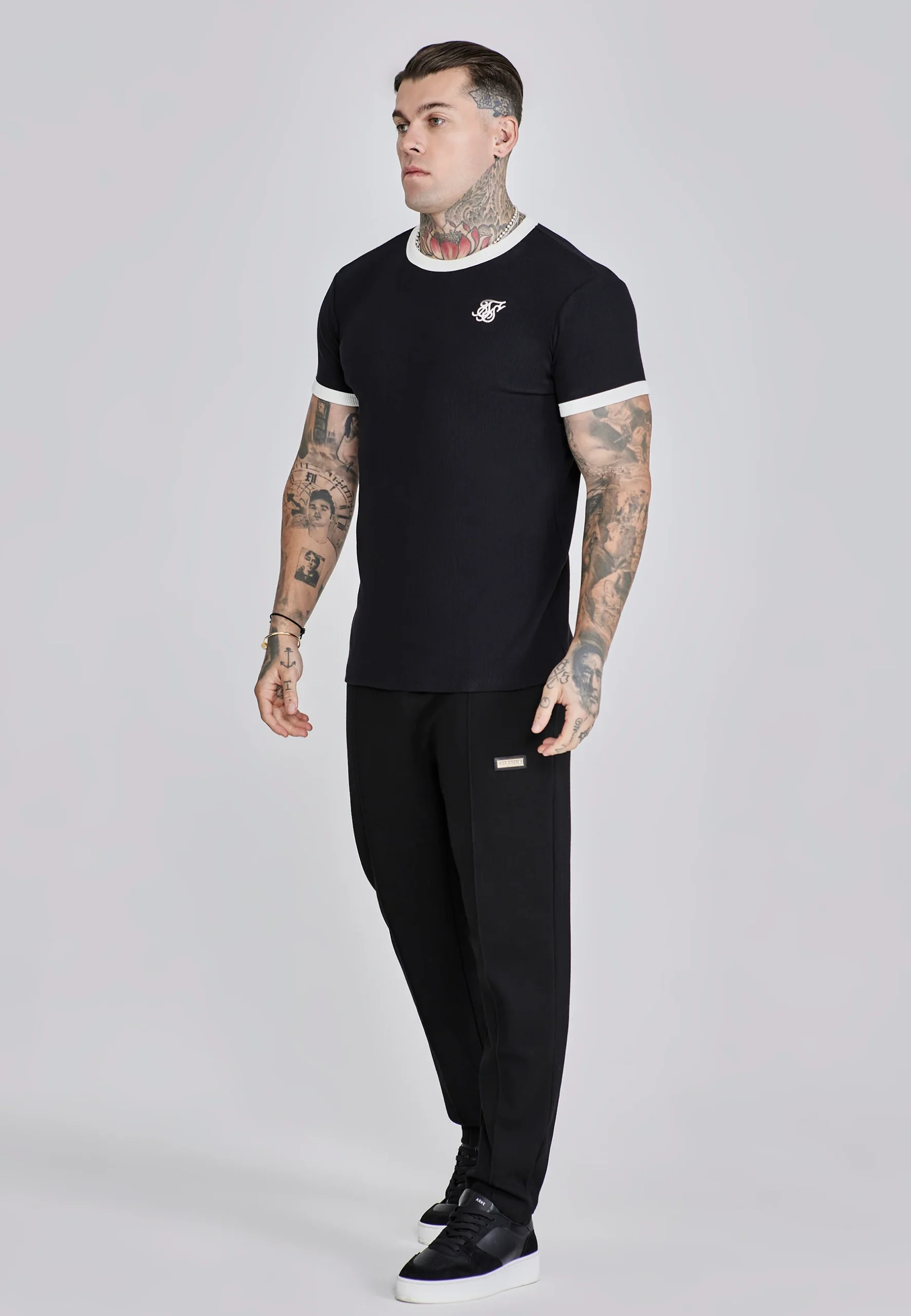 Le tissu côtelé, le col rond de couleur contrastée et les extrémités des manches contrastées confèrent au t-shirt une vibe rétro moderne. Le logo SikSilk sur la poitrine assure le look typique de la marque.