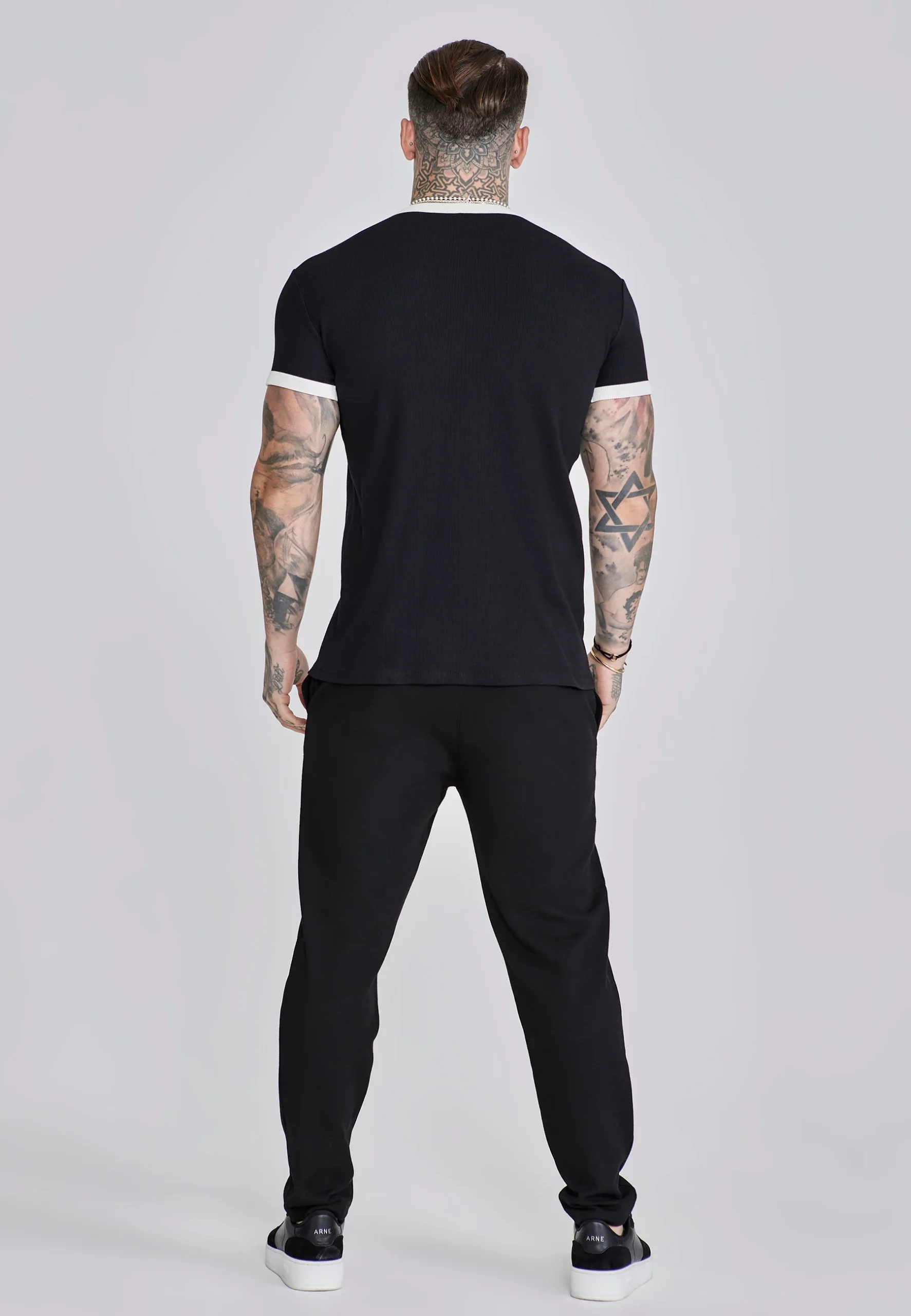 Le T-shirt Ribbed Ringer en noir mise sur des contrastes sportifs et une coupe qui souligne la silhouette.