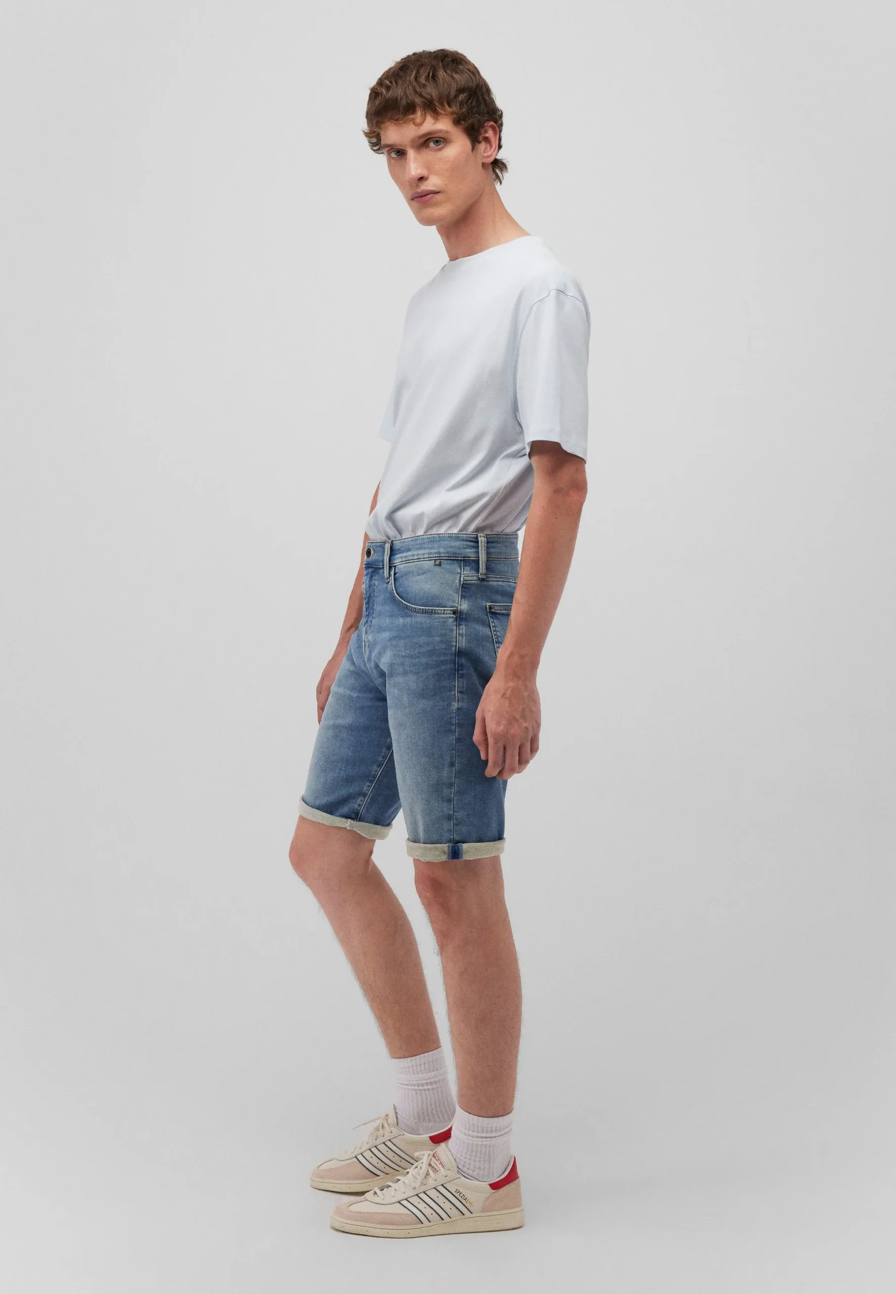 Le lavage clair à l’aspect légèrement délavé confère au short un look cool et décontracté. Idéal pour les tenues d’été avec une touche sportive !