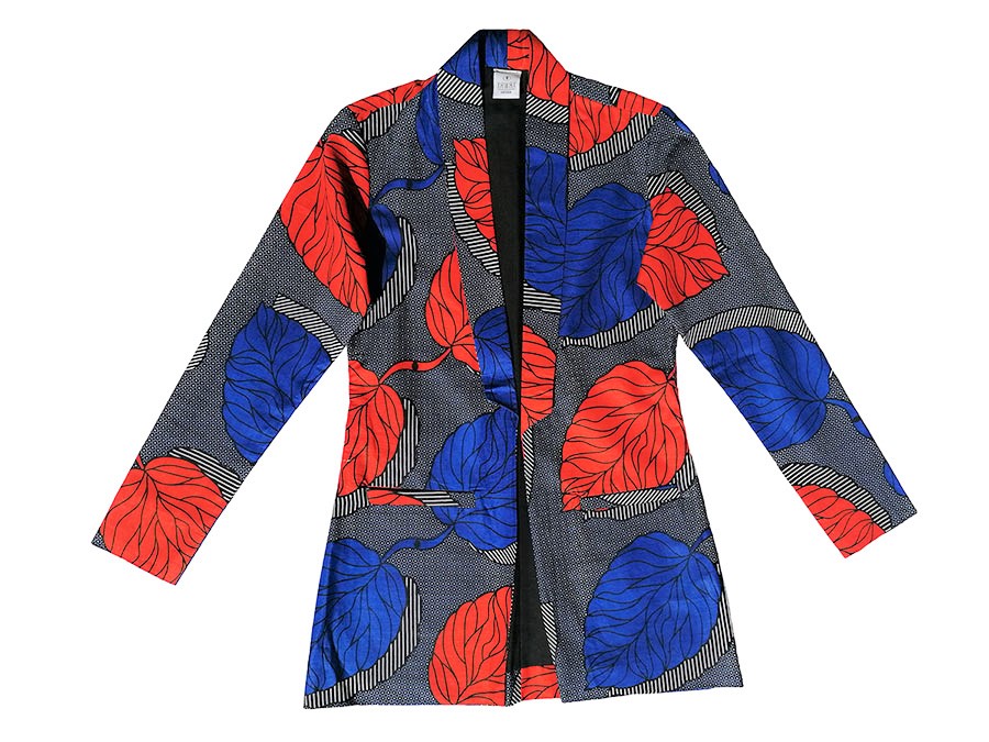 Veste blazer en tissu wax Leaf (100% coton) imprimé rouge et bleu