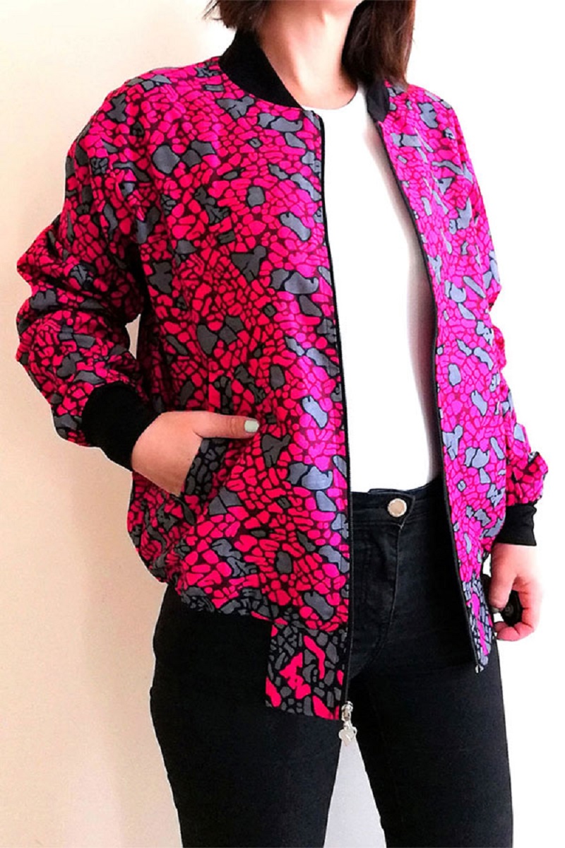 Bomber Femme en wax Kaolack Tissu 100% coton avec imprimé rose, gris et noir