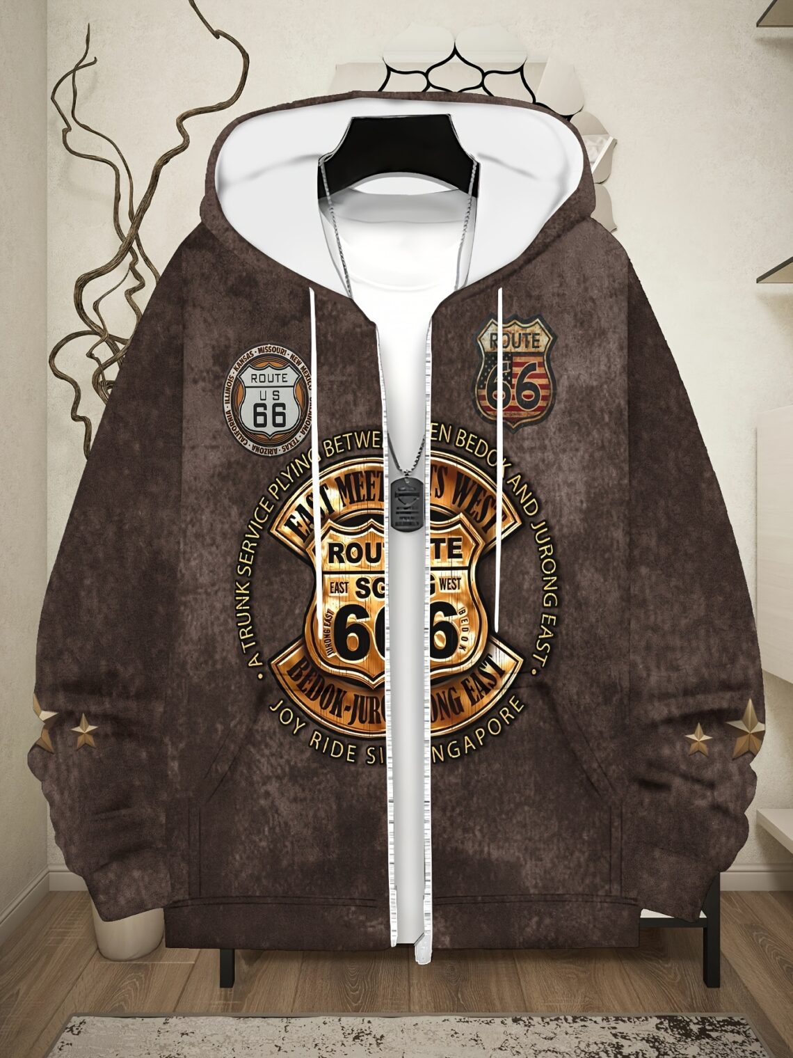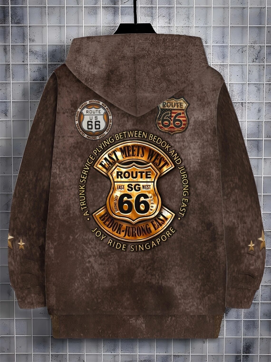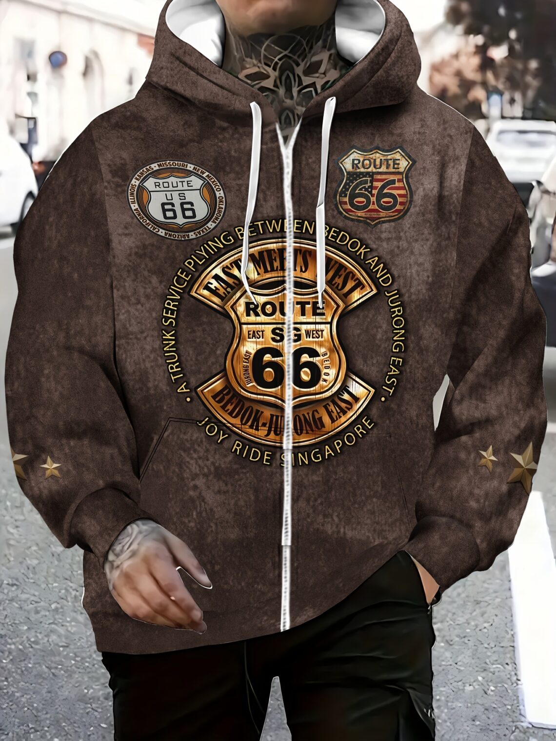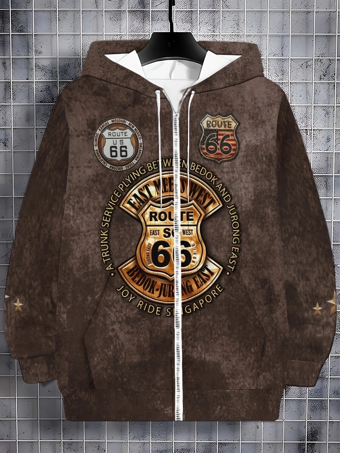 Veste capuche vintage Route 66 homme – sweat chaud rétro automne hiver